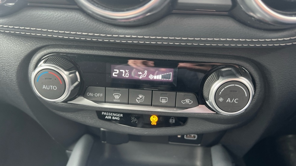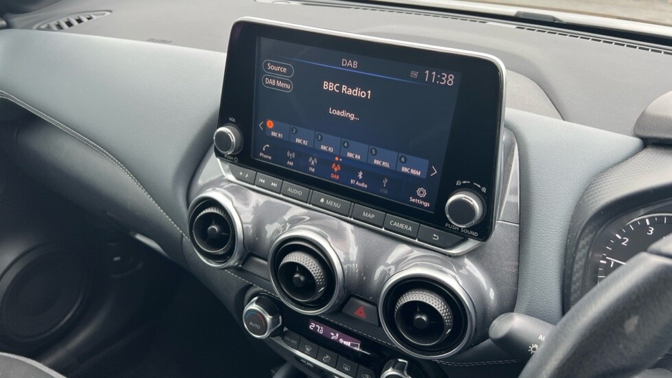 Insurance Group 12, 0 Previous Owners, .7'' full colour TFT screen combimeter, 8'' infotainment colour display with touch screen, Apple CarPlay and Google Android auto, Drive modes select (Eco, normal and sport), Emergency and breakdown call, Front parking sensor, Idle start/stop system, Intelligent lane intervention, Lane departure warning system, Nissan connect nav with TomTom traffic, Nissan connect services and Wifi connection, Outside temperature sensor, Power Steering, Rear parking sensor, Traffic sign recognition, Trip computer, Gasoline particulate filter, 6 speakers, Bluetooth system, USB, Aux-in and 12V socket, DAB Digital radio, Rear console USB port, Auto dimming interior rear view mirror, Automatic hazard signal with emergency stop signal, Body colour bumpers, Body colour door handles, Electrically adjustable door mirrors with integrated indicators, Follow me home headlights, Front and rear electric window with one touch driver window, Heated and auto folding door mirrors, High beam assist, LED daytime running lights, LED headlamps, LED rear fog lamp, LED rear lamps, Rain sensor windscreen wipers, Rear privacy glass, Rear wiper, Three blink turn signal, 3 height adjustable rear headrests, 60/40 split folding rear seat, Automatic climate control, Card holder on driver sunvisor, Cloth upholstery, Driver and passenger sliding and reclining seats, Driver side rear coat hanger, Driver/passenger sunvisors and vanity mirrors, Front and rear cabin lights, Front armrest, Front door pockets with bottle holders, Front head restraints, Front/rear passenger grab handles, Grey synthetic leather kneepad, Height adjustable driver's seat, Internal chrome door handles, Leather gearshift knob, Leather steering wheel, Luggage board, Luggage space lighting, Monoform sporty seats, Multifunction steering wheel, Rear door bottle holders, Steering wheel mounted gearshift paddles, Telescopic steering wheel adjustment, Two cupholders in front centre console, Two rear isofix child seat anchorage points with top tether, Voice recognition switch on steering wheel, Welcome light and console tray ambient lighting, ABS with EBD and brake assist, Active ride control, Active Trace Control, Driver and passenger airbags, Driver and passenger side airbags, Electric handbrake with auto hold function, Electronic Stability Programme (ESP), Front and rear curtain airbags, Height adjustable seatbelts, Hill start assist, Intelligent emergency braking with pedestrian and cyclist recognition, Seatbelt reminder for