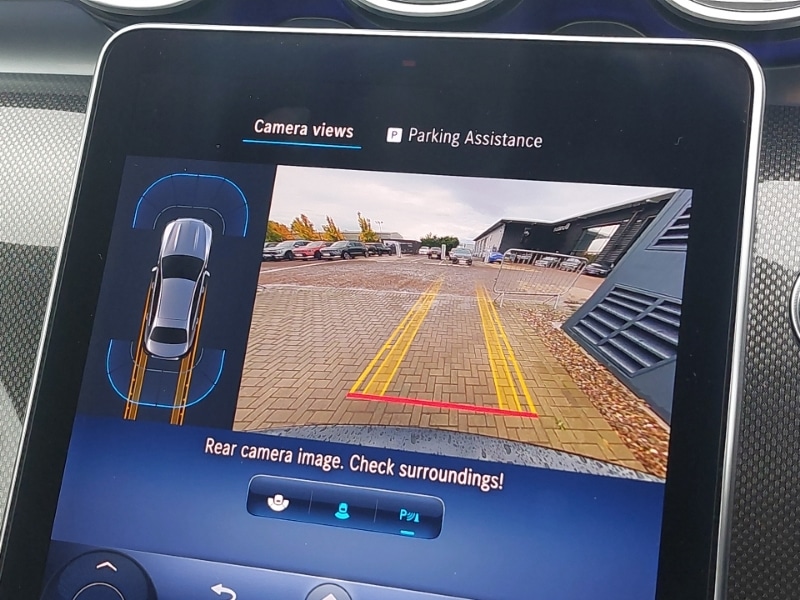 Insurance Group 43, MBUX multimedia system, 11.9" high resolution multimedia colour display, 12.3" digital instrument cluster display, Wireless charging system for mobile devices, Smartphone integration, DAB Digital radio, MBUX navigation premium, Extended MBUX functions, Finger print sensor, Hard disc navigation, Charging services plus, Active parking assist with PARKTRONIC, LED high performance headlamps, LED daytime running lights, Electrically adjustable and heated door mirrors, Heated front seats, Electrically height/reach adjustable steering column, Ambient lighting premium, 40:20:40 split folding rear bench seat, THERMATIC 2 zone automatic climate control, Interior light package - C Class, Memory package - C Class, Mirror package - C Class, Parking package with reversing camera - C Class, Stowage space pack - C Class, Central locking with interior switch, automatic locking and crash sensor with emergency opening function, Keyless Go, Urban guard vehicle protection plus, Metallic paint, Artico man-made leather - Black with contrast stitching, 18" AMG 5 spoke design aerodynamically optimised alloy wheels painted in tantalite grey with high sheen finish