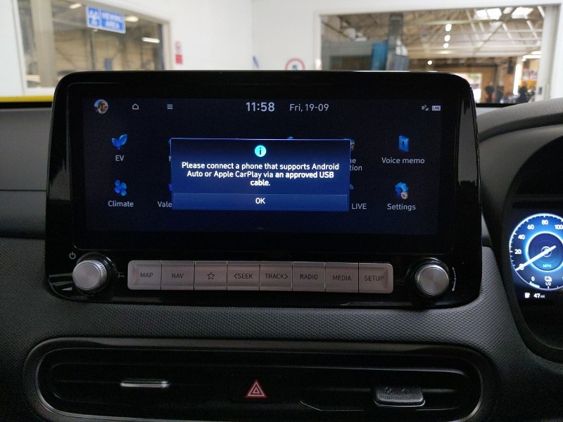 Insurance Group 20, 10.25" touchscreen satellite Navigation with Bluelink and Mapcare, Bluetooth connectivity with voice recognition, Cruise control - smart adaptive speed control with stop and go function, Driver supervision instrument cluster with 10.25" LCD display, Forward collision assist with pedestrian monitoring and cycle detection, Lane follow assist, Lane keep assist, Parking system with rear camera and guidance system, Phone connection with apple carPlay and android auto, Rear parking sensor, Krell premium audio system with 8 speakers and subwoofer, RDS and Digital DAB, USB/aux input socket, Automatic headlights with dusk sensor, Rain sensor, Automatic climate control with defog system for front windscreen, CCS Combo rapid charge port (50kW)