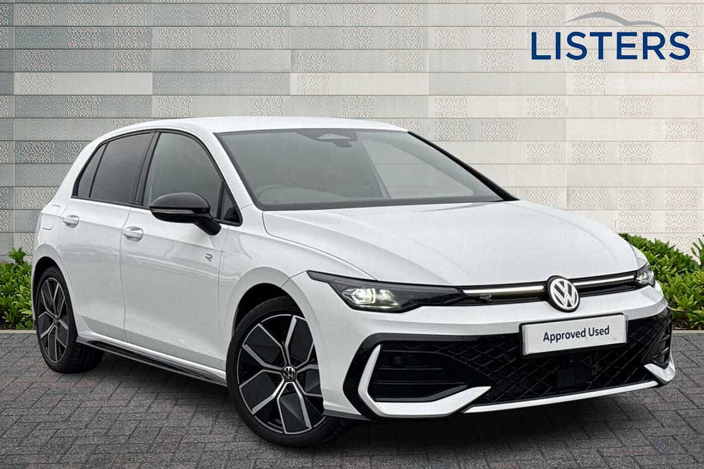 ExDemo, Insurance Group 22, 0 Previous Owners, Franchise Approved, Available from 03/02/2026. Volkswagen Golf Hatchback 1.5 TSI 150 Black Edition 5dr in Pure White. Specification Includes Safety,Area view including rear view camera with front and rear view camera system and two side cameras,Front and rear parking sensors,Packs,Winter package Golf Hatchback,Exterior Features,Front and rear electric windows,Heat insulating windshield made of laminated glass,Rain sensor,Rear windscreen washer and wiper with interval delay,Body colored bumpers in RLine style,Body colour door handles,Rear exhaust tailpipe,Rear side wing doors,Volkswagen logo in front illuminated lighting animation with wake up/goodbye scenario and illuminated door handles,3rd brake light,Automatic headlamp activation with Coming home and Leaving home feature,Exterior ambient lighting,LED separate daytime running light,Rear fog light on one side and reversing lights on both sides,Welcome light with surround lighting,Safety,ABS,Autonomous emergency braking front assist with pedestrian and cyclist monitoring,Electronic parking brake with auto hold,ESC (Electronic Stability Control),Rear disc brakes,Volkswagen roadside assistance,Activated carbon canister,Adaptive cruise control (ACC),Advanced driver attention and drowsiness monitor,Dynamic road sign display,Dynamic steering,Multifunction front facing camera for distance control,Oncoming vehicle braking when turning including swerve support,Speed limiter,Auto dimming rear view mirror,Exterior mirrors convex on the left and aspherical on the right,Remote electrically foldable door mirrors puddle lights and reverse activated passenger's door mirror,3 point height adj front seatbelts + pretensioners,3 rear three point seatbelts,Child locks on rear doors,Driver and front passenger airbag with front passenger airbag deactivation,Extended pedestrian protection measures,Two tone horn,Tyre pressure loss indicator,Interior Features,Front + rear black carpet mats,12V socket in front centre console,12V socket in luggage compartment,Black roof lining,Brushed stainless steel pedals,Chrome plated radiator grille inserts air vent surrounds and light switch surrounds,Front centre armrest,Leather gearshift handle,Rear cupholder and loadthough,Titanium black instrument panel,Ambient lighting with 30 colour including LED light unit in front footwell with selectable light colour,Luggage compartment lighting,XDS electronic differential lock for improved traction and handling,Sun visors with illuminated vanity mirrors,Audio /