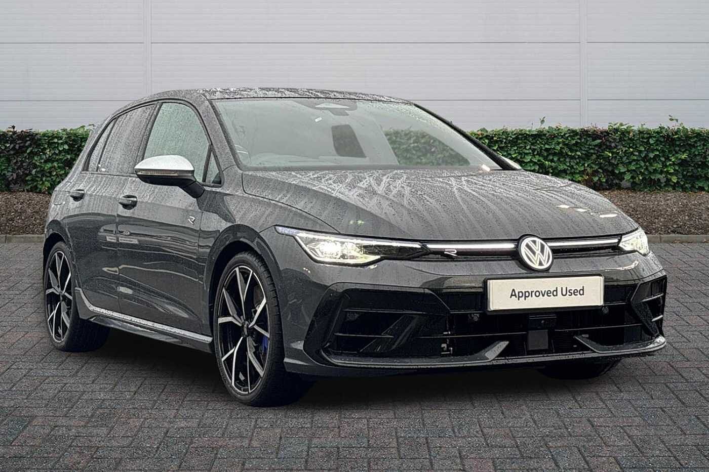 Ex-Demo, Insurance Group 33, 1 Previous Owner, Franchise Approved, Available from 04/02/2026. Volkswagen Golf Hatchback 2.0 TSI 333 R 4Motion 5dr DSG in Dolphin Grey. Specification Includes Exterior Features,Metallic paint,R Performance exhaust system- rear muffler in titanium,Adaptive chassis control DCC - driving profile selection- front and rear shock absorpotion- front disc brakes,Sports suspension,Safety,Area view including rear view camera with front and rear view camera system and two side cameras,Interior Features,Art velour cloth upholstery with inserts of front and outer rear seats in fabric inRin- inner sides of bolsters- premium sport front seats,Leather wrapped multifunction sports heated steering wheel with touch control and paddle shift,Tilting and sliding panoramic sunroof with 2X front and 2X rear LED reading lights,Audio / Communications,Harman/Kardon sound system including 12 channel digital amplifier- 480 watt output and 9 speakers plus subwoofer,Miscellaneous,Head up Display,Packs,Nappa leather upholstery pack - Golf,R performance pack - Golf,R performance pack with 19in Estoril black alloy wheels - Golf,Winter package 2 - Golf Hatchback,Wheels,19in Estoril black diamond turned surface alloy wheels with progressive steering,Paint - Metallic,Metallic - Dolphin grey,Trim - Leather,Nappa leather pack - Blue/Soul black,Exterior Features,Front and rear electric windows,Heat insulating windshield made of laminated glass,Rain sensor,Rear tinted glass 65% light absorbing from B pillar backwards,Rear windscreen washer and wiper with interval delay,Body colour door handles,Exterior mirror housings in matte chrome,Illuminated lighting animation with wake up/goodbye scenario,R name plate,Rear side wing doors,3rd brake light,Automatic headlamp activation with Coming home and Leaving home feature,Front fog lamps and cornering light,LED matrix headlights with ambient light V2- advanced high beam- dynamic range contol with cornering- LED rear lamp with indicator- poor weather,LED separate daytime running light,Light assist with High beam control,Rear fog light on one side and reversing lights on both sides,Welcome light with surround lighting,Safety,ABS,Autonomous emergency braking front assist with pedestrian and cyclist monitoring,Electronic parking brake with auto hold,ESC (Electronic Stability Control),Front blue brake callipers with R logo,Hill start assist,Rear disc brakes,Volkswagen roadside assistance,Activated carbon canister,Adaptive cruise control (ACC),Advanced driver attention and drowsiness