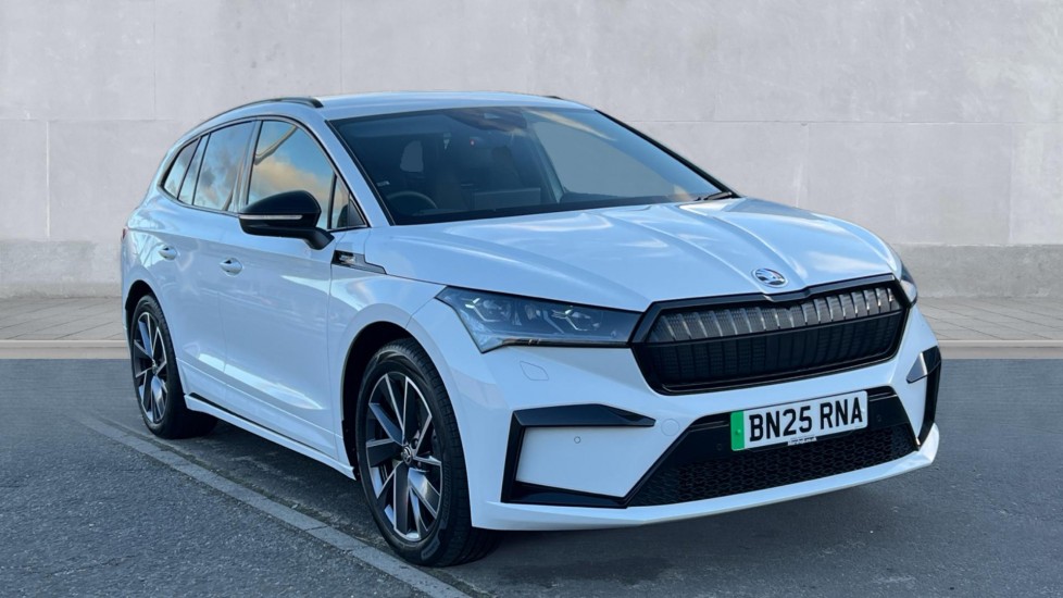 NewburyInsurance Group 37, 0 Previous Owners, ..13'' touchscreen display, Adaptive Cruise Control with traffic jam assist, Blind Spot Detection (BAS), Bluetooth system, Digital cockpit, Drive mode selector, Driver alert system, E-call, Electrically operated tailgate with kick activation (virtual pedal), Electronic engine sound, Exterior temperature indicator, Front and rear parking sensors, Gesture control, Progressive steering, Rear view camera, Satellite navigation system, Skoda Connect iV remote services with charging, air conditioning and smart schedules, Speed assist, Speed limiter, Tailgate unlocking from outside, Traffic sign recognition, Travel assist with emergency assist, lane assist plus with narrow lane assist and urban evasive steering support, Voice control system, Washer fluid level indicator, Wi-Fi hotspot, Wireless charging with cooling function, Wireless smartlink, 175 kW DC charging, 6m mode 3 cable (32A), Four wheel drive, Shock absorption in front, Shock absorption in rear, 8 Speakers, DAB Digital radio, USB-C ports (charging + data) front and rear, Auto dimming rear view mirror, Black decorative trims (including window and grille surround), Black roof rails, Body colour bumpers, Body colour door mirrors and handles, Body colour door sills, Chrome side window surrounds, Dashboard and door moulding light in multiple colours, Door mirror memory, Dynamic headlight range control with cornering light function, Electric adjustable heated folding door mirrors with boarding spots and welcome logo, Electric front and rear windows, Front fog lights, Full LED Matrix beam headlights with variable light distribution, Full LED rear lights with variable lighting functions, Headlight washers, Heat insulating darkened glass in side and rear windows, Heat insulating glass in windshield, Heated rear window, LED daytime running lights, LED third brake light, Light assistant (coming home/tunnel light), Privacy glass and acoustic side windows, Radiator grille in gloss black, Rain and light sensors, Rear boot spoiler, Rear side wing doors, Rear window wiper with washer system and intermittent control, Rear wiper, Safety reflectors on front and rear doors, Skoda lettering on tailgate in black, Sports bumpers, Tow bar preparation, Variable front intermittent wipers, 12V socket in boot, 1x umbrella, 3 rear headrests, 3 seat bench in 2nd row, 3-spoke black leather heated sports multifunction steering wheel with black stitching and paddles for recuperation level selection, 4 foldable roof handles with rear
