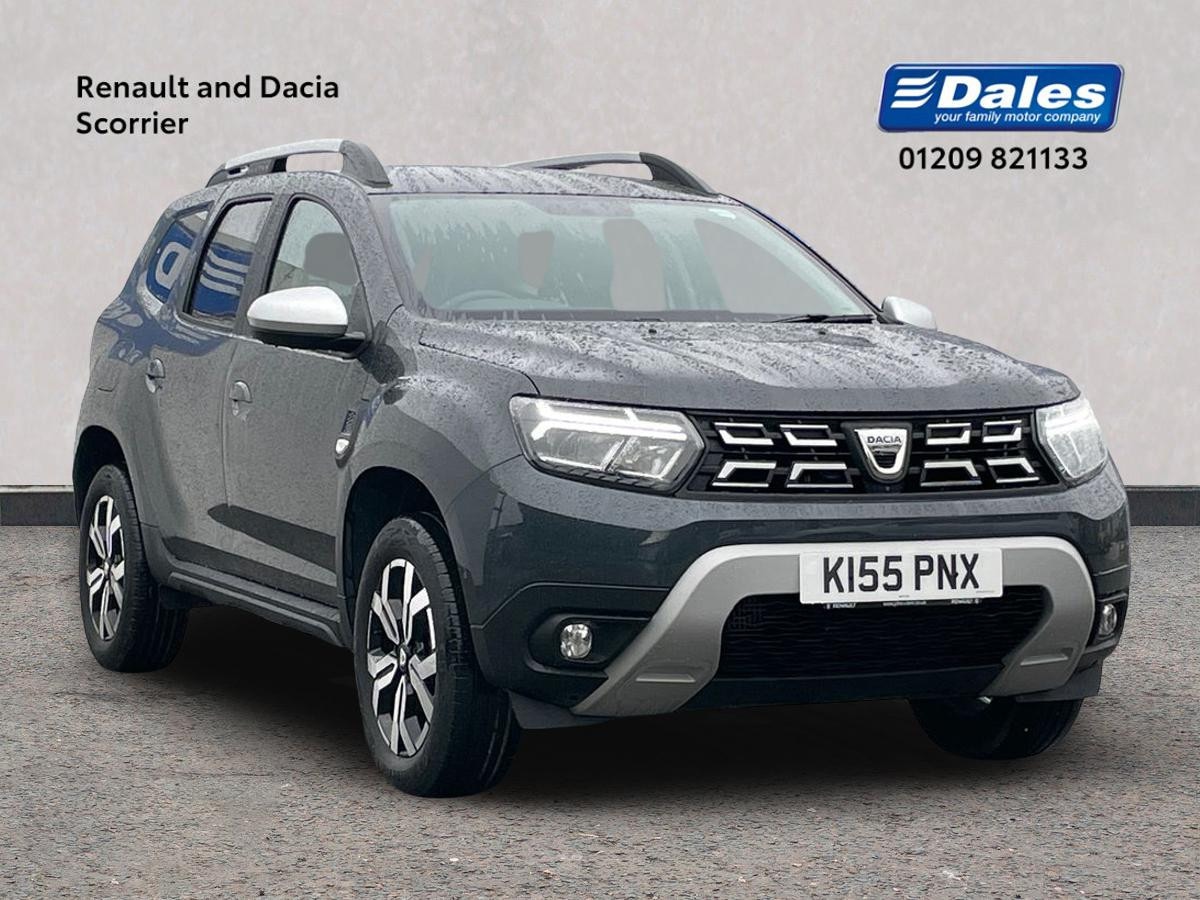 RedruthInsurance Group 22, 1 Previous Owner, The Dacia Duster 1.3 TCe 150 Prestige 5Dr EDC Estate in Grey is a rugged and capable SUV that offers both style and functionality. With only 8200 miles on the clock, this 2022 model is still in pristine condition. The exterior is accentuated by features such as 17" Alloy wheels, black side sills, and grey quartz longitudinal roof bars with Duster inscription. The interior is designed for comfort and convenience, with heated seats, automatic air conditioning, and an 8" Media Navigation system with wireless smartphone replication. Safety features include ABS, Emergency brake assist, Blind spot warning, and front, side, and curtain airbags. The Dacia Duster also comes equipped with modern technology like a multi-view camera, rear parking sensors, and a tyre pressure monitor. This SUV is perfect for those looking for a reliable and well-equipped vehicle for both urban driving and off-road adventures.