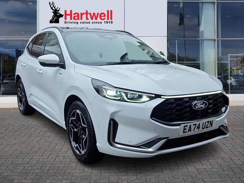 WatfordInsurance Group 20, 0 Previous Owners, 12V Power Point in Floor Console, 12v Power Point in Cargo Area, 12v Socket - Voltage Regulator, Ford SYNC 4 Navigation, eCall, 360 Degree Camera, Adaptive Cruise Control, Front and Rear Parking Sensors, Pre-Collision Assist with Autonomous Emergency Braking, Selectable Drive Modes, Trip Computer, Tyre Pressure Monitoring System, 19in Alloy Wheels - ST-Line- Ebony Black - Machined Finish, Aluminium - Finish Front Scuff Plates with ST-Line Script, Black Roof Rails, Dual Exhaust Tailpipes with Unique Brushed Stainless Steel Finish, Exterior Door Handles - Body Coloured, Front Windows - Laminated Glass, Front and Rear Bumper - Sporty Body Colour with Rear Ebony High-Gloss Insert, Heated and Power Folding Door Mirrors - Puddle Lights - Memory Function - Camera, Kuga Badge, Large Rear Spoiler, Locking Wheel Nuts, Lower Bodyside Moulding - Body Colour, Power Opening Panoramic Roof, Quickclear Heated Windscreen, Rear Privacy Glass, Red Brake Calipers, Rocker Panel Mouldings - Body Colour - ST-Line Design, ST-Line Badge on Left and Right Side Wings, ST-Line Bodystyling Kit, ST-Line Front and Rear Bumper Moulding - Body Colour, Tailgate Handle - Body Colour, Tow Hooks - Front and Rear, Tyre Inflation Kit, Windows - Power Front and Rear with Global Closing, Full LED Headlamps, Headlights - Automatic Follow Me Home Lighting, Headlights - Automatic High Beam Assist, Headlights - Levelling System - Manual, Headlights - Unique Bending, High-Mounted Brake Light, LED Daytime Running Lights,
