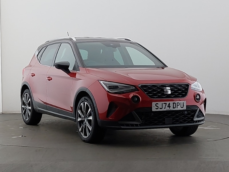 StaffordInsurance Group 14, Full Link Smartphone Integration with Mirror Link, Apple Car Play, Google Android Auto with USB Type C cable for Apple and Android compatibility, Park assist system, Rear view camera, Wireless phone charger, Lane keeping system, 10" Digital cockpit, Safe and driving pack (S) - Arona, Interior chrome pack - Arona, 9.2" colour touchscreen with navigation system, voice control and USB port (type c), DAB digital radio and AM/FM radio, Auto dimming interior rear view mirror, Automatic activation of hazard warning lights, Dark tinted rear windows, Electric front/rear windows, Electrically adjustable, heated and folding door mirrors, Front fog lights with cornering function and rear fog light, FULL LED automatic headlights with dynamic headlight range control, coming and leaving home, LED daytime running lights, LED rear tail lights and licence plate lights, Rain sensing wipers, Twin exhaust pipe styling hidden exhaust pipe, 60/40 split folding rear seat, Dual zone climate control, Interior ambient lighting, ISOFIX points in outer rear seats with top tether anchorage points, Microsuede cloth upholstery + sports bucket seats, Perforated flat bottomed leather steering wheel/gear knob/handbrake with red stitching and FR logo, Emergency Brake Assist (EBA) and front assist, Hill hold control, Multi-Collision braking, KESSY Keyless entry and go, Electronic engine immobiliser, Alarm with back-up horn, 18" Performance Cosmo grey alloy wheels