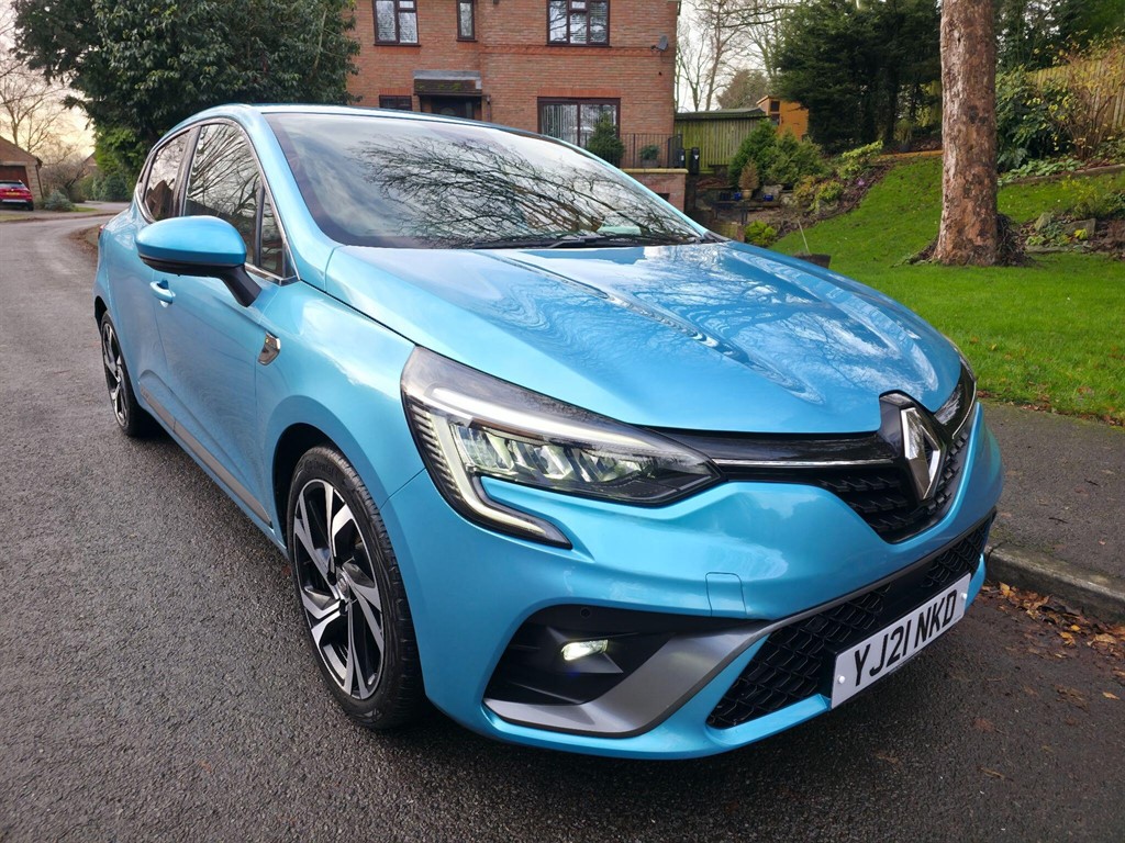 1 Previous Owner, Boasting a full service history with its last service completed on 24th June 2024 at 28,339 miles, this 2021 Renault Clio E-TECH RS Line presents a compelling proposition. This one owner vehicle is a Euro 6 compliant model, powered by an efficient 1.6L Petrol Hybrid engine. The RS Line trim enhances its appeal, and you'll appreciate the convenience of front and rear parking sensors, a rear view camera, and handsfree keycard with push button start and keyless entry. Inside, the automatic climate control ensures a comfortable cabin environment for all journeys. This Renault Clio stands out with its impressive fuel economy, achieving a remarkable 63 mpg, which indicates it is more economical than many similar vehicles. Furthermore, its low insurance group and low CO2 emissions highlight its cost effectiveness and environmental consideration compared to other cars in its class. A 12 month MOT will be provided on purchase, and the vehicle comes with a 3 month warranty for your peace of mind.. 9.3in EASY LINK Touchscreen with Navigation,Rear-View Camera,Cruise Control with Speed Limiter,Eco Mode,Parking Sensors - Front,Parking Sensors - Rear,Shark Fin Antenna,Auto Lighting and Rain Sensing Wipers,Automatic Headlights and Front Wipers,Autonomous Emergency Braking,Full LED Front and Rear Headlamps Integrating Daytime Running Lights,Handsfree Keycard with Push Button Start-Stop Function,ISOFIX Child Seat Fixing Points on Rear Outermost Seats,HSA - Hill Start Assist,17in Alloy Wheels - RS Diamond Cut,Automatic Folding Door Mirrors,Automatic Climate Control,Multisense System - Ambient Lighting and Driving Modes Selector,RS Line Interior Trim,Seats - Drivers Height Adjustment,Power Assisted Steering - Electric Variable
