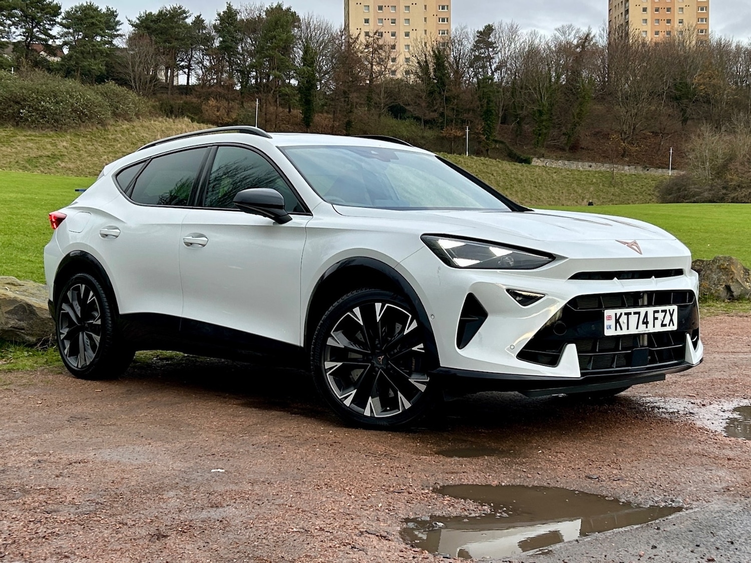 Kirkcaldy0 Previous Owners, 10.25" digital cockpit and configurable dashboard, Adaptive cruise control with follow-to-stop and speed limiter, Advanced driver alert system, Advanced lane assist with semi-automatic vehicle control in a medical emergency and traffic jam assist, Dynamic chassis control with driving profile selection (Comfort, Sport, CUPRA, Individual), Dynamic road sign display, Emergency steering support with turn assist, Forward collision warning with automatic braking, Full link phone integration, Intelligent park assist, RPM, trip computer, outside temp gauge, instrument light brightness, low fuel warning light, lights on reminder, gearshift indicator, Service interval indicator, Side and exit assist, Speed sensitive power steering, Start/stop system with regenerative braking, Top view camera, Virtual pedal and electric tailgate, Voice control system, Wired Android Auto, Wireless apple carplay, Wireless phone charger, Adaptive chassis control with continuous operation, CUPRA sport suspension, Electronic locking differential and dynamic traction support, 2 front and 2 rear USB type C sockets, Media system with navigation, 12.9" touchscreen display, voice control, DAB, steering wheel mounted controls, Auto dimming rear view mirror, Body colour door handles, Body coloured bumpers, Dark grey wing mirror, Daytime running light with automatic headlight control and coming home feature, Door panel ambient lighting, Dynamic headlight range control, Electric front/rear windows, Electrically adjustable heated and folding door mirrors with memory function, Gloss black roof rails and window surrounds, High beam assist, LED 3rd brake light, LED front fog lamps with cornering function, LED Taillights with dynamic indicator, Matrix LED headlights with multifunction camera, Rain sensing wipers, Rear diffuser with twin exhaust pipe on each side, Rear fog lights, Rear side wing doors, Rear wash/wipe, Tinted rear windows, Welcome lights (within exterior mirror housing), 12V socket, 2 front and 2 rear reading lights, 3 seat bench in 2nd row, 60/40 split rear bench seat with armrest and mechanical seat release, Black headlining, Black interior roof lining, Cupra sports pedals, Dust/pollen filter, Electrically adjustable front seats with lumbar support and memory function, Front and rear head restraints, Front centre armrest, Heated front seats, Heated supersports multifunction leather steering wheel with satellite buttons and gear shift paddles, Height/reach adjust steering wheel,