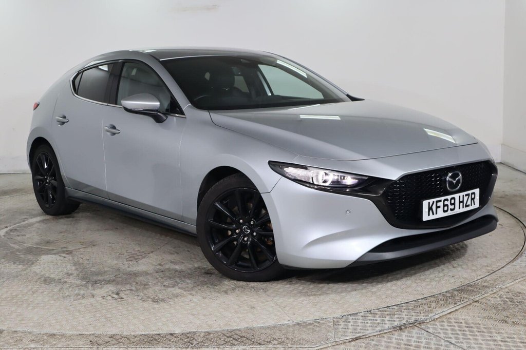 BuryInsurance Group 23, 1 Previous Owner, This 2019 Mazda3 SKYACTIV G GT Sport Tech is a superb example of Mazdas commitment to innovative engineering. Powered by a responsive 2.0 litre petrol engine and meeting Euro 6 emissions standards, this model offers a refined driving experience. It comes equipped with a suite of advanced features designed for convenience and safety, including adaptive LED headlights that adjust to your driving conditions, dusk sensing lights for automatic illumination, and an integrated Bluetooth system for seamless connectivity. The colour active driving display, a sophisticated head up display, keeps essential information in your line of sight without distraction. Experience the impressive performance of this Mazda3, capable of accelerating from 0 to 62 miles per hour in just 8.6 seconds, showcasing its dynamic capabilities. The GT Sport Tech trim also includes a helpful reversing camera with parking assistance, making manoeuvring in tight spaces straightforward. Furthermore, the generous boot space ensures you have ample room for luggage or shopping. These features collectively demonstrate how this Mazda3 offers a superior driving experience compared to other vehicles in its class..18in Alloy Wheels - Black Metallic, 360 Degree View Monitor, 7in Colour TFT Display, 8.8in TFT Colour Centre Display, ABS - Anti Lock Braking System, AM-FM-DAB Radio - Single CD-MP3 Featuring 12 Speaker Bose Surround Sound System, Apple CarPlay and Android Auto, Blind Spot Monitoring with Rear Cross Traffic Alert, Bumper - Front Body Coloured with Black Lower Bezel, Bumper - Rear Gloss Black Lower Moulding, Chrome Interior Trim Accents - Steering Wheel Centre Bezel - Surround Start-Stop and Glove Box Handle, Colour Active Driving Display - Colour Head-Up Display, Cruising Traffic Support - CTS, DSC - Dynamic Stability Control, Daytime Running Lights, Door Mirrors - Electrically Adjustable-Heated-Auto Power-Folding, Door Mirrors with Adjustable Memory and Tilt-Down Function when Reversing, Door Pockets - Driver - Front Passenger and Rear, Door Trim - Vinyl Leather, Driver Attention Alert - DAA, Driver Monitor, Dual Front Airbags, Dual-Zone Climate Control Air Conditioning, Electric Power Assisted Steering - EPAS, Electric Windows - Front and Rear with One-Touch Auto Down - Up, Electrical Power Outlet, Electronic Parking Brake with Auto-Disengage Function - Auto-Hold Function, Emergency Stop Signalling System - ESS, Emergency Tyre Repair Kit, Engine Start-Stop Button, Frameless Auto Dimming Rear View Mirror, Front Knee Airbag for Driver, Front Passenger Airbag Cut-Off Switch, Front Side Airbags, Front Smart City Brake Support, Front and Rear Courtesy Lamps, Front and Rear Curtain Airbags, Front and Rear Smart City Brake Support, G-Vectoring Control Plus - GVC Plus, Gear Shift - Leather-Wrapped, Glovebox with Light, Grab Handles - Front Passenger and Two Rear with Coat Hooks, Grille - Dark Metallic Finish Signature Wing, Grille - Gloss Black Finish, Headlights - Adaptive LED, Headlights - Coming-Leaving Home, Headlights - Daytime Running Lights, Headlights - Dusk-Sensing Lights, Headlights - LED with Auto Headlight Levelling, High Beam Control, Hill Launch Assist - HLA, ISOFIX Child Seat Anchorage for Outer Rear Seats, Integrated Bluetooth, Intelligent Speed Assist, Interior LED Lighting, Lane Keep Assist with Lane Departure Warning System, Luggage Compartment - Light, Luggage Compartment - Power Outlet, Mazda Radar Cruise Control, Multimedia Commander, Parking Sensors - Front and Rear, Privacy Glass - Rear and Rear Side Windows, Rain-Sensing Front Wipers, Rear Fog Light, Rear Roof Spoiler - Gloss Black, Rear Seats - Folding Centre Armrest Equipped with Two C