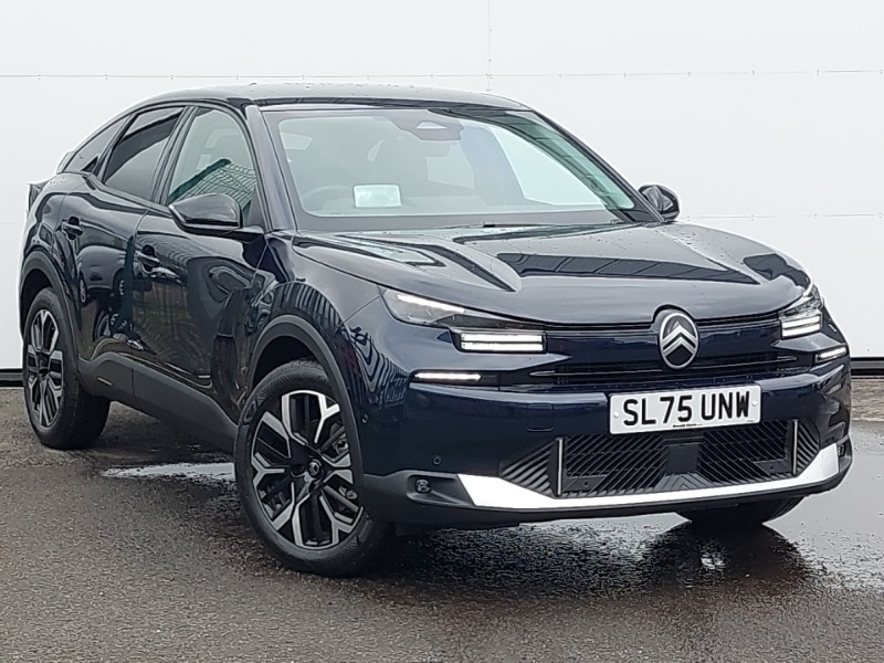 KilmarnockInsurance Group 19, 0 Previous Owners, Apple car play and Android auto, My Citroen Drive Plus: 10" high-resolution touchscreen user interface, controlling media, connectivity, vehicle settings + connected nav, Active blind spot detection, Citroen connect box emergency and assistance system, Citroen Smart Pad Support - integrated support for attaching a tablet computer for front passenger, In-crash braking, Electronic Power Steering (EPS), Advanced comfort suspension - double hydraulic stops on front and rear suspension, DAB Digital radio, Bluetooth telephone and audio streaming, 6 speakers, Safety pack plus - C4/C-Series Edition/Max, High level acoustic insulation pack - C4/C4 X/e-C4 X, Puncture repair kit with compressor, Remote locking with deadlocks, Keyless entry and start, Immobiliser, Tyre underinflation detection, Seatbelt unfastened on the move warning, Row 1 side thorax airbags, Row 1 and 2 curtain airbags, Manual deactivation of front passenger airbag, Manual child lock in second row, Hill start assist, Front seatbelt pretensioners, ESP, Electric parking brake, Driver and front passenger airbags, ABS, 3x3 point rear seatbelts, Driver and passenger sunvisors with illuminated vanity mirrors, Dashboard tray in front cabin, Boot light, 3 seat bench in 2nd row, 3 rear headrests, 3rd brake light, Body colour bumpers, Body colour door handles, Electrically heated, folding and adjustable external rear view mirrors with courtesy lighting, Electrochrome interior rear-view mirror with automatic day-night switching, Front and rear electric windows, Gloss black rear skirt, LED front fog lamps with static cornering function, LED front headlamps, Rain sensing automatic front windscreen wipers, Perla Nera black painted external rear view mirrors, Welcome and goodbye lighting, Shark fin roof aerial, Rear wiper, Rear side wing doors
