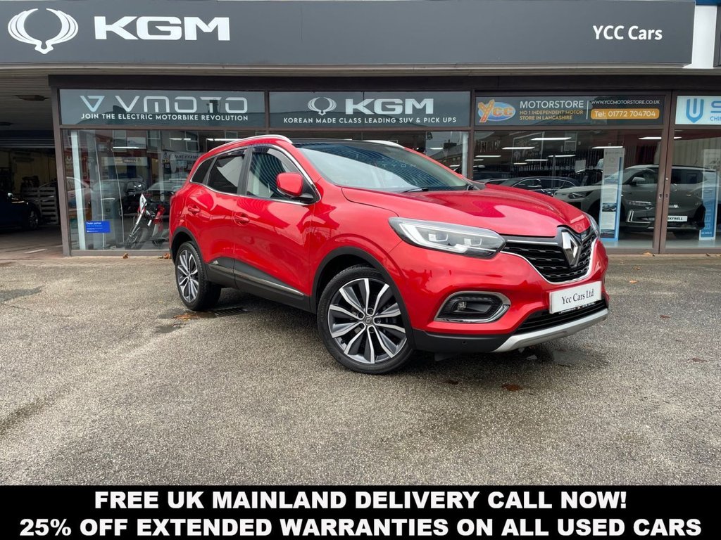 Preston0 Previous Owners, This 2020 Renault Kadjar TCe S Edition presents a superb ownership proposition with its remarkably low mileage of just 26,600 miles, having been cherished by only one owner from new. This Euro 6 compliant 1.3 litre petrol model boasts a clear vehicle history check and received its last service at 24,218 miles, offering peace of mind. The S Edition trim level comes equipped with a suite of convenient features, including Keycard with Hands Free and Walk Away Lock Function for effortless access, a Rear Parking Camera complemented by front and rear parking sensors for confident manoeuvring, and Full LED Headlamps for enhanced visibility. Further enhancing your driving experience, this Kadjar seamlessly integrates with your digital life through Apple CarPlay and Android Auto, allowing easy access to your favourite apps and navigation. These features, combined with the exceptionally low mileage and single owner history, clearly set this Renault Kadjar apart from other vehicles of its age and class, making it a truly compelling choice for anyone seeking a well maintained and feature rich compact SUV. FREE DELIVERY FULL HISTORY 1 OWNER. 6 STAMP FULL SERVICE HISTORY, SERVICED AT 3,396mls, 7,849mls, 13,572mls, 19,514mls, 24,218mls AND WILL COME FULLY SERVICED BY OUR IN HOUSE TECHNICIANS BEFORE COLLECTION. NEW LOW RATE FINANCE AVAILABLE SUBJECT TO ACCEPTANCE. £1.50 PER MILE UK MAINLAND DELIVERY. ALL VEHICLES ARE GIVEN A VEHICLE HEALTH CHECK, SERVICED TO MILES AND COME WITH A FRESH 12 MONTHS MOT. EXTENDED WARRANTIES ARE AVAILABLE ON ALL OUR VEHICLES AND WE CAN PROVIDE CREDIT TO ALMOST ANYONE. WITH OVER 30 YEARS OF MOTOR TRADE EXPERIENCE BUY FROM PEOPLE YOU CAN TRUST. CLICK AND COLLECT AVAILABLE. CALL 01772 704704 OPT 1 NOW..19in Alloy Wheels - Zeus, 3 Height Adjustable Rear Head Restraints, 3 Point Inertia Reel Seatbelts, 3-Seat Rear Bench, 4x35W Speakers with 3D Sound, 60-40 Split Folding Seats, ABS with EBA - Emergency Brake Assist, Accessory Power Point, Adjustable Dashboard Illumination, Air Recirculation, Airbags - Curtain Front and Rear, Airbags - Deactivation of Front Passenger - For Use with Child Seats, Airbags - Driver and Passenger Adaptive Front, Airbags - Front Lateral, Apple CarPlay and Android Auto, Auto Dimming Rear View Mirror, Automatic Dual Zone Climate Control, Automatic Headlights and Front Wipers, Back-Illuminated Central Console, Body Sided Moulding with Chrome Insert, Central Rear Armrest with Cup Holders, Chrome Window Surrounds, Cloth - Black with Blue Top Stitching, Courtesy Lights - Rear, Cruise Control with Speed Limiter, Daytime Running Lights - LED, Deadlocking and Immobiliser, Display - Digital Speedometer, Door Handles - Body Coloured - Front, Door Mirrors - Body Coloured, Door Mirrors - Heated and Electrically Adjustable - Automatically Folding, Door-Boot Open Warning Light, Driver and Passenger Seat Belt Undone Warning Audible Alert, Driver Seat Belt Height Adjustable, Easylife Quick Folding Rear Seats, Eco Mode, Electric Front Windows, Electric Rear Windows, Electronic Parking Brake, ESP - Electronic Stability Programme with ASR - Anti-Skid Regulation and UCL - Understeer Logic Control, Exterior Temperature Indicator, Extra Tinted Windows - Rear and Tailgate, Fingertip Audio System Remote Control, Fixed Glass Panoramic Sunroof, Flame Red, Floor Mats - Front and Rear, Fog Lights - Chrome Surrounds, Full LED Headlamps, Gear Change Indicator, Headlights - Automatic High-Low Beam, Headrests - Front Fully Adjustable, Heated Rear Windscreen, Height Adjustable Front Seat Belts, HSA - Hill Start Assist, Insurance Approved - Category 1 Alarm System and Immobiliser, Integrated C-Shape Indicators with Side Repeaters, Interior Courtesy Light Controlled By All 4 Doors, ISOFIX Child Seat Anchorage on Rear Outer Seats, Keycard - Hands Free with Walk Away Lock Function, LDW - Lane Departure Warning, LED Front Fog Lights with Cornering Lights, LED Tail Lights, Low Fuel Level Warning Light, Luggage Compartment - Illumination, Multi Position Boot Floor, Oil Level Gauge, Parking Sensors - Front and Rear, Pollen Filter, Power Steering, Protective Rear Brake Disc, R-Link 2 Multimedia System - 7in Touchscreen, RAID - Renault Anti Intruder Device - Auto Closure -