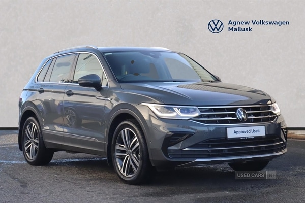 Agnew Volkswagen Mallusk are delighted to offer this stunning 2023 Volkswagen Tiguan Elegance 1.5 TSI 150PS 7-Speed DSG 5 Door in Dolphin Grey with Leather-wrapped, heated, multi-function steering wheel with shift paddles Driver Assistance Pack with Lane Assist, Side Assist and Front Assist 19" 'Auckland' Dark Graphite Alloy Wheels Winter Pack with Heated Front Seats "Discover Media" Navigation system with App-Connect for Apple CarPlay and Android Auto Keyless Entry Electric Tailgate Tilting and sliding panoramic sunroof with rear panoramic sunroof IQ.LIGHT LED Matric Headlights Adaptive Cruise Control system Multifunction front facing camera for distance control Dark red rear LED combination lamps