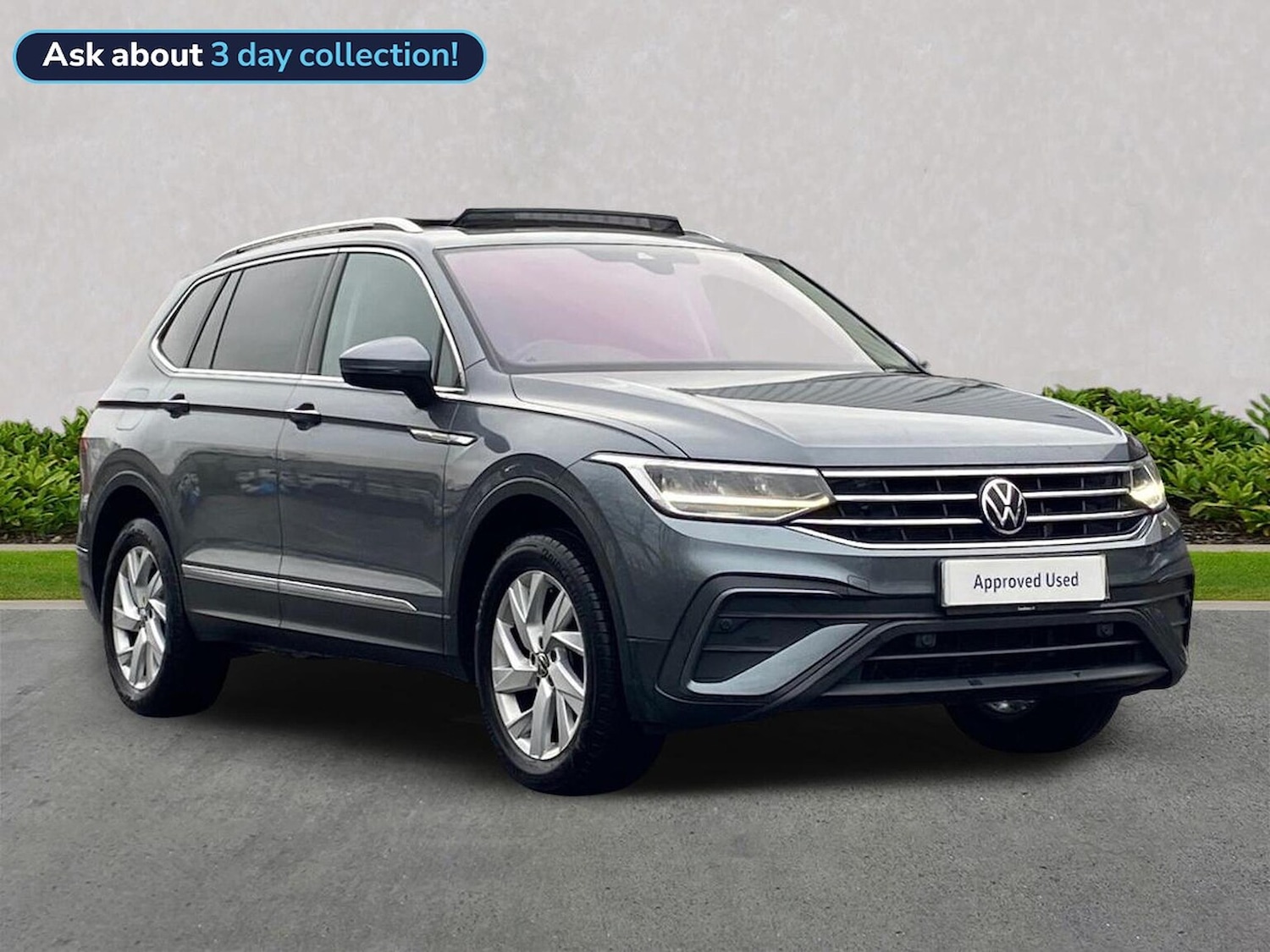 Insurance Group 19, 0 Previous Owners, Franchise Approved, THE 7 SEAT TIGUAN ALLSPACE IN PLATINUM GREY WITH GREAT FACTORY FITTED OPTIONS THAT INCLUDE, FOLDING DOOR MIRRORS, PANORAMIC SUNROOF AND A HEATED FRONT WINDSCREEN ALONGSIDE THE STANDARD FEATURES OF ALLOY WHEELS, SAT NAV, FRONT AND REAR PARKING SENSORS, ADAPTIVE CRUISE CONTROL, LED HEADLIGHTS, CARED FOR BY ONE OWNER FROM NEW WITH A FULL VW SERVICE HISTORY. SUPPLIED UNDER THE VOLKSWAGEN APPROVED USED PROGRAMME, PRIOR TO DELIVERY OUR FULLY QUALIFIED TECHNICIANS GIVE ALL VOLKSWAGEN APPROVED USED CARS A COMPREHENSIVE WORKSHOP INSPECTION WITH OVER 100 INDIVIDUAL CHECKS, FOLLOWED BY A ROAD TEST , A STATUS CHECK TO VALIDATE VEHICLE HISTORY, MILEAGE AND OUTSTANDING FINANCE. REST ASSURED ALL SERVICE WORK HAS BEEN COMPLETED IF DUE WITHIN 6 MONTHS AND COMES WITH 12 MONTHS VOLKSWAGEN NATIONAL WARRANTY, 12 MONTHS ROADSIDE ASSISTANCE AND FULLY HPI/SERVICE HISTORY CHECKED. SUPPLIED UNDER LOOKERS TRANSPARENT PRICING PROGRAM WHERE WE REGULARLY CHECK OUR PRICES AGAINST THE MARKET TO ENSURE OUR PRICES ARE COMPETITIVE SO WE CAN PASS ON THE VERY BEST DEALS TO YOU. VOLKSWAGEN NORTHALLERTON IS A MULTI AWARD WINNING OPERATION, CHECK OUR GOOGLE REVIEWS.