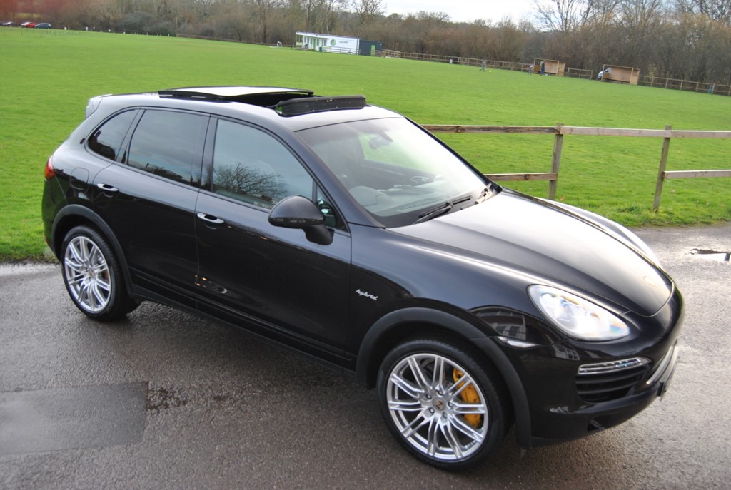 Horsham1 Previous Owner, Stunning huge specification 2011 Model Porsche Cayenne 3.0h V6 S Hybrid finished in Black With Black Ventilated Sport Seats. Only 38.000 miles with FSH. 21 Inch Sport Edition Alloys 8 Speed automatic Power tailgate Air Conditioned Seats GTS Sport Seats Front and Rear Aluminium Package TV Reception Multimedia Socket Air Suspension with Level System (PASM) 19 inch spare wheel Yellow Brake Callipers Porsche Ceramic Brakes (PCCB) Memory Steering Wheel 3 Spoke steering Wheel Panoramic Glass Sunroof Luggage Floor Alcantara Roof Lining Leather Pillars 12 Way Electric Seats Ski Load Heated Front and Rear Seats Air Conditioned Seats Power Tailgate Top Tint Screen with Insulating Glass Darkened Rear Glass Leather Dashboard Piano Dash Inlays Dual Function Illuminated Sun visors Reverse Camera Electric Memory Seats Cruise Control Telephone Module Bose High End Sound system James Paul Car Sales is a family run business in a small village of Bucks Green conveniently situated on the Surrey and Sussex border. Established for over 35 years every car we offer is carefully hand selected and will come with a comprehensive provenance check. All of our vehicles are subject to a thorough pre delivery inspection through our workshops including a fresh MOT and service where required. Please ask us about our extremely competitive finance packages or Visit our website www.jamespaul.co.uk to create your own Finance Quote and Apply to help you fund your new car. Part exchanges welcome either way if you are looking to trade up or down. Please note that we do not accept reservations on cars via third party sites, if you wish to put a deposit on a car, please call 01403 823723 and speak to a member of the James Paul Car Sales team.. 18in Cayenne Alloy Wheels,18in Cayenne S III Alloy Wheels,8Way Electric adjust Front Seats,All season Tyres,Black gear lever & selector surround & off road Controls,Black high gloss Trim,Black lower body mouldings- Front&Rear,CDR- 31 Radio & CD & MP3 player with 10 Speakers,Cruise Control,Floor mats,Illuminated Ashtray,Leather Steering Wheel & gearshift,Manual Headlight level Control,Model designation deletion,No model inscription,No smoker Package,Passenger under Seat storage tray,Rear tailgate spoiler,Tyre Air compressor,Tyre Repair kit with sealant foam