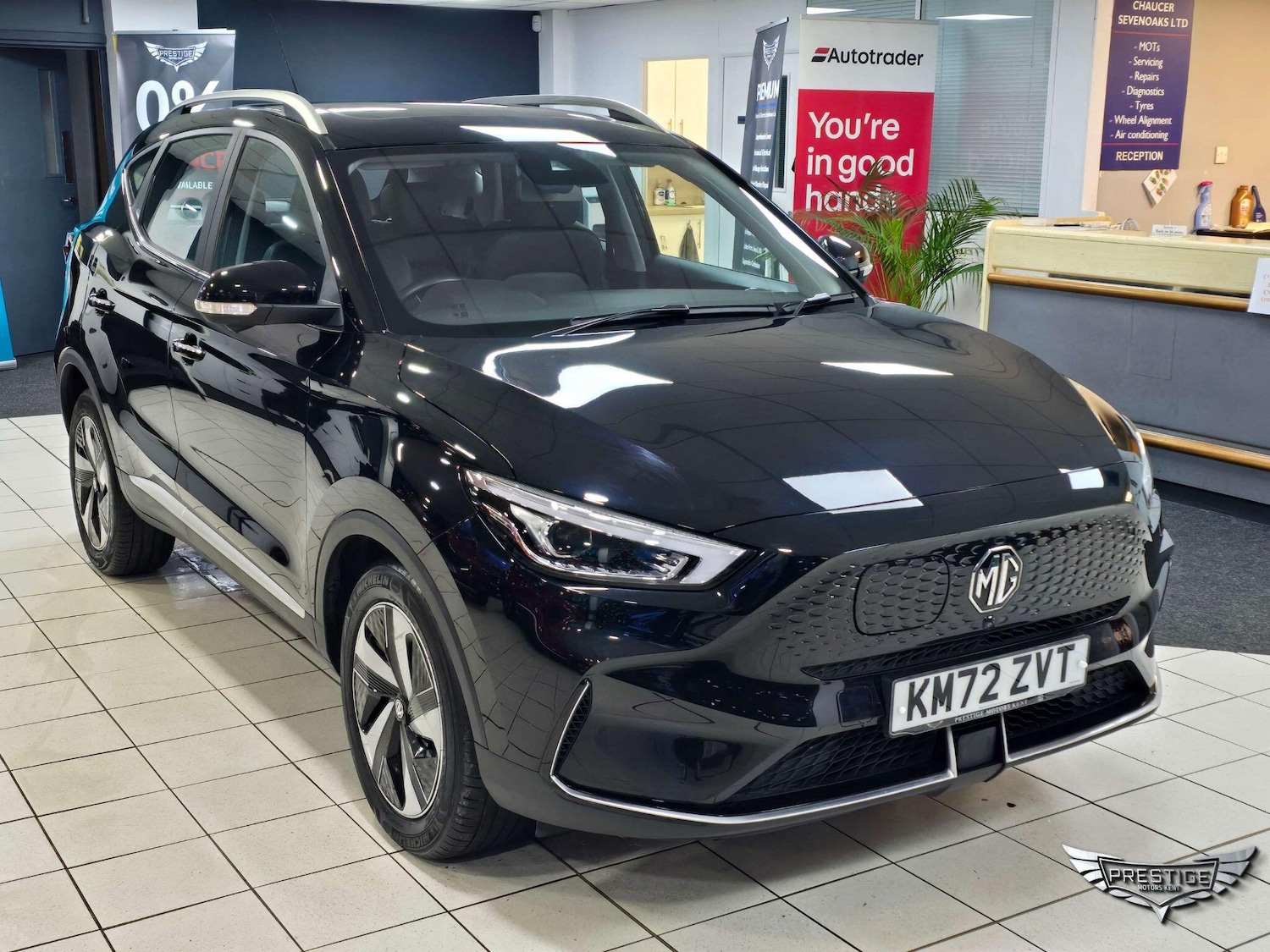 0 Previous Owners, This 2022 MG ZS Trophy Electric boasts a full dealership service history and has had only one owner from new, ensuring excellent provenance. This stylish SUV features a 51 kWh battery offering a maximum range of 198 miles, with a full home charging time of 8 hours using a 7kW charger. For faster charging, it can reach 80% capacity in just 41 minutes at a public charging station. The vehicle is in excellent condition with its MOT valid until November 2026, and a clear vehicle history check.The MG ZS Trophy Electric comes equipped with a range of notable features designed to enhance your driving experience. These include Adaptive Cruise Control for effortless motorway journeys, Bluetooth connectivity for seamless phone integration, and Apple CarPlay to access your favourite apps. Safety is also a priority, with Blind Spot Monitoring to alert you to unseen vehicles and automatic headlights that adjust to changing light conditions. These features collectively demonstrate the superior comfort and convenience offered by this particular MG ZS model. Visit www.prestigemotorskent.co.uk to apply for finance directly through our website! Every vehicle undergoes a comprehensive multi-point mechanical inspection, comes with a 3-month warranty and AA breakdown cover and receives a professional valet. All our cars are HPI-checked, so you can buy with confidence.Our cars are pre-delivery inspected and ready to drive away. While we try to ensure the accuracy of information, specifications may differ. Please confirm any specific features with your sales executive before making a decision.Please note: A 240 admin fee applies when using third-party external finance providers. We are conveniently located just 2 miles from Junction 4 on the M25. For more information, visit us online at www.prestigemotorskent.co.uk