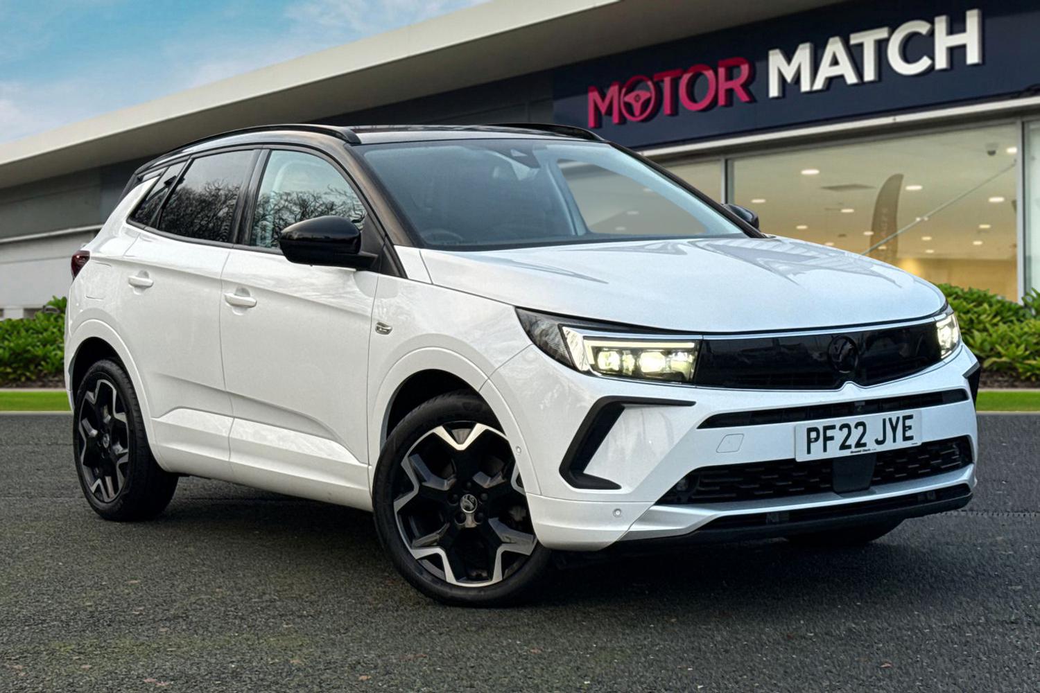 Insurance Group 17, 0 Previous Owners, This Vauxhall Grandland 1.2 Turbo Ultimate Auto comes to us in excellent condition having just one previous owner. 19" Diamond Cut Alloy Wheels join an elegant White paint finish for an appealing outer design. Inside feels comforting and practical, with Heated Front Seats on offer to keep you nice and warm in the winter. At the centre of the Grandland youll find an easy to operate multimedia display packed with features both entertaining and practical. Bluetooth offers endless hours of entertainment via audio streaming and hands free calls, with Apple Car Play and Android Auto both available. Take advantage of a variety of features designed to make your daily commute run that much smoother. Keyless Ignition makes setting off simple so theres no need to fumble around with your keys. LED Daytime Running Lights and LED Rear Lights provide great visibility. Adaptive Cruise Control makes motorway travel safe and effortless, while a Rear Camera gives you that extra level of confidence when dealing with tricky parking jobs. vehicle is ULEZ Compliant This vehicle is part of the Motor Match Promise that includes a minimum 30 days or 1,000 mile warranty whichever is sooner, RAC extended warranty of up to three years is available, along with flexible finance packages available. For more information, a personalised finance quote or to book a test drive, contact us today!
