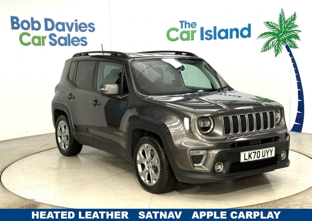 EbbwvaleInsurance Group 15, 1 Previous Owner, Gorgeous Special Edition AUTO Jeep Renegade "Limited" T4 150BHP Looks Stunning in Granite Crystal Metallic. Includes Touchscreen SATNAV, Apple CarPlay, Heated Ebony Leather Seats & Heated Steering Wheel, Bluetooth Phone & Music Streaming, Adaptive Cruise Control, Traction Control, Climate Control, 18" Granite Alloy Wheels, DAB Radio, Privacy Glass, Front & Rear Parking Sensors, Great Full Service History & 2 Keys to list a few. EURO 6 ULEZ Complaint****** Bob Davies Car Sales is established as a trusted supplier of quality cars. Now in great new premises at The Car Island. Family business providing low mileage cars for over 40 years. High standards, great reputation & 5-star customer service. Open 6 days. Best value in 100 mile radius. ***** Request a personal walk round on any car and well make sure youre happy before reserving, travelling or delivery. No pressure, no fuss, no fees. Secure with £100 refundable deposit.***** We deliver all over the UK to your door with our successful "Mouse to House" delivery. Wherever you live, we will bring your perfect car to you. Feel confident in the quality and condition of our vehicles, our warranty covers the UK.****** Best Rate Finance available to all, even for poor credit. No deposit needed just contact us and we will tailor to suit you. Part Exchange Very Welcome. " Quality Cars at Sensible Prices".GPS Navigation & 18" Alloys, Apple CarPlay and Android Auto, Adaptive Cruise Control & Privacy Glass, Heated Seats & Heated Steering Wheel, AUTO with FULL SERVICE HISTORY, Granite Crystal, GPS Navigation, Apple CarPlay and Android Auto, Cruise Control - Adaptive, 18in Alloy Wheels - Granite, VP4 Radio NAV - 8.4in Touchscreen - EU, Uconnect Live Services via Mobile, Speakers x6, Parking Sensors - Front, DAB - Digital Audio Broadcasting, ISOFIX Child Seat Restraint System, Heated Front Seats, Heated Steering Wheel, Dual Zone Climate Control, Alarm - Thatcham Category 1, LaneSense - Lane Departure Warning Plus, Roof Side Rails - Bright Satin, Uconnect Services TBM - Telematic Box Module, VP2 7 - WITH ICS FOR ECE, Trailer Sway Damping - Control, Traction Control, 2nd Row Fully Functional USB Port, 12V Auxiliary Power Outlet Centre Console, LED Pack