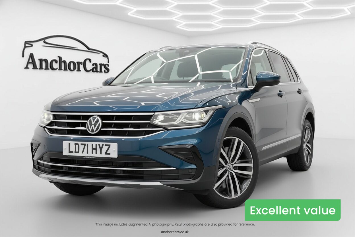 TadleyInsurance Group 20, 0 Previous Owners, This 2021 Volkswagen Tiguan 1.5 TSI Elegance is a stylish and practical SUV that delivers a smooth, comfortable drive with plenty of room for family life or commuting. Powered by a 1.5-litre petrol engine producing 150ps and paired with a DSG semi-automatic gearbox, it offers a great balance of performance and efficiency. Finished in a sleek blue with the well-equipped Elegance trim, it comes packed with premium features and a high-quality interior. Owners praise it for its “refined drive and spacious layout,” and our pricing makes it a top-value choice compared to similar mid-size SUVs on the market. This vehicle is available now at Anchor Cars Tadley (call 0118 982 9111), part of Anchor Cars Ltd – the award-winning group behind Anchor EV and Vanlux. Recently named Used Car Supermarket of the Year 2025 and rated 5 out of 5 stars excellent on AutoTrader, we’re committed to giving you a trusted, no-fuss buying experience. Call today to arrange a viewing or ask about our flexible delivery options, full care packs and customer guarantee – so you know exactly what to expect when buying with us.