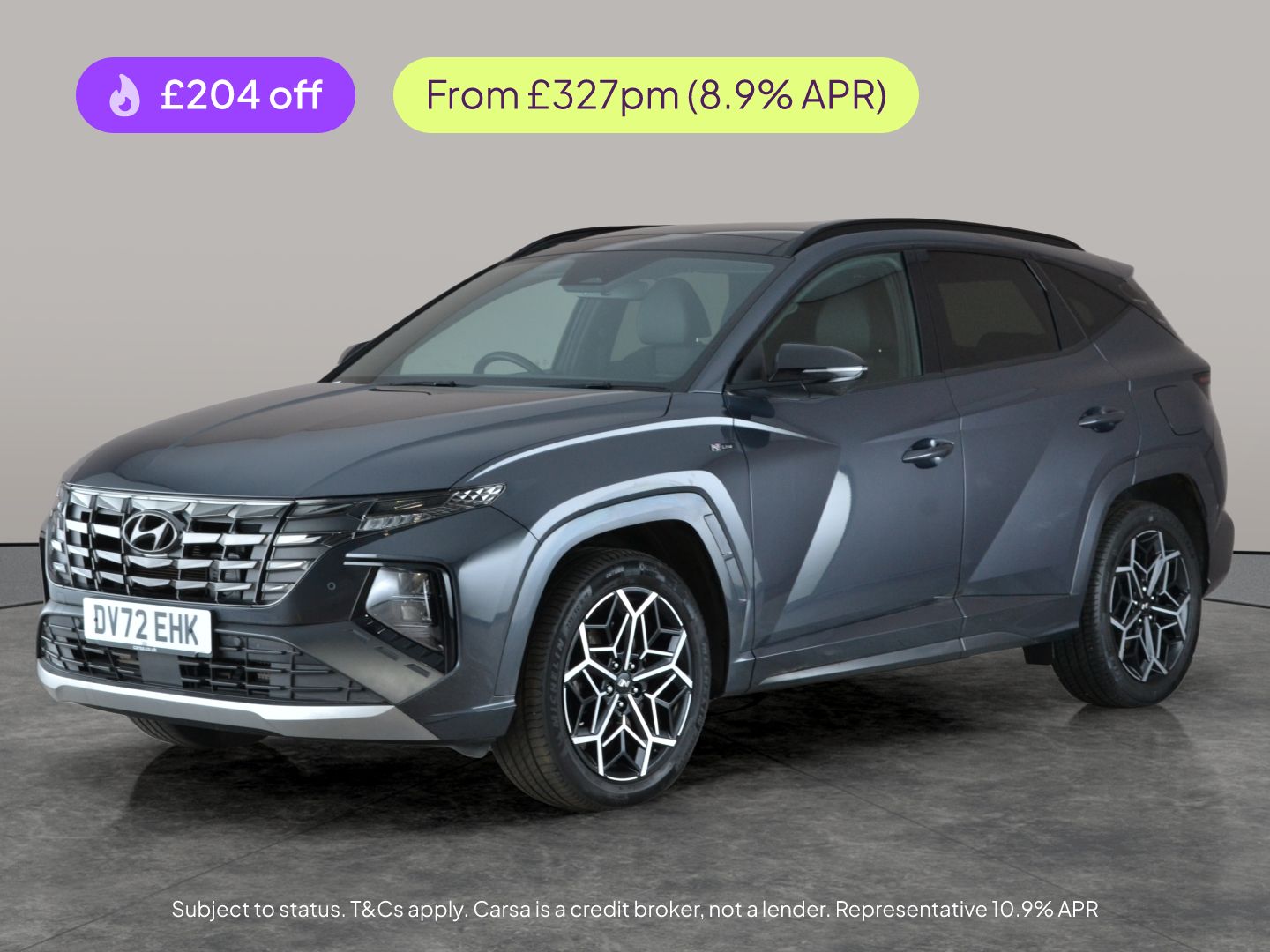 TowcesterInsurance Group 20, 0 Previous Owners, Experience comfort and innovation with this stylish grey Hyundai Tucson. Enjoy open-air drives with a panoramic sunroof, heated seats and steering wheel for chilly mornings, and effortless journeys thanks to keyless entry and wireless smartphone charging. Stay connected with Apple CarPlay, and navigate with ease using built-in Sat Nav and a reversing camera. Advanced features like Blind Spot Assist, Lane Departure Warning, and front and rear parking sensors add to your peace of mind. Striking 19in alloy wheels complete the look. 3 services recorded, last serviced on 13/12/2025 at 18,513 miles. MOT to 20/10/2026. Visit our website for service history, online valuation, full vehicle specification plus multiple images. This vehicle is VAT qualifying. Any feature/option specified here is from 3rd party data. We cannot guarantee the accuracy of any specification supplied by a 3rd party. We recommend that you physically check the specification of the vehicle on site prior to purchase. This information does not form part of the buying contract. Terms & Conditions apply. We have over 2,000 cars available from our 10 national branches, check our website to see all our stock. Our Trustpilot rating is 4.4/5 with over 9,000 reviews.