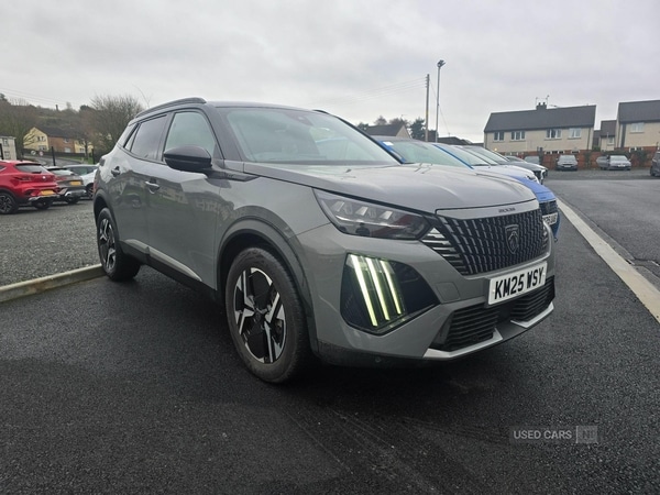 Newry0 Previous Owners, This 2025 Peugeot 2008 GT is a superb example, having had only one owner from new. This stylish compact SUV boasts a responsive 1.2 litre petrol hybrid engine, meeting Euro 6 emission standards and offering impressively low CO2 emissions. Inside, you'll find the innovative PEUGEOT 3D i-Cockpit with its configurable 3D head up instrument panel, complete with adaptive cruise control. Convenience is key, with a smartphone charging plate for wireless phone charging and Bluetooth connectivity for seamless calls and media.Experience effortless driving with the 2008 GT's impressive acceleration, reaching 0 to 62mph in just 8.3 seconds, a performance that sets it apart from many similar vehicles. Parking is made simple thanks to the Visio Park 1 180 degree colour reversing camera, offering clear visibility. The automatic air conditioning, featuring both a pollen filter and a carbon active filter, ensures a comfortable cabin environment for all occupants, further enhancing this vehicle's appeal.Still under New Car Peugeot warranty until 26/03/2028.All our Approved Used Peugeots are prepared to the highest standards and come with the balance of the Manufacturer warranty. Both HP and PCP Finance is available at 10.9% APR. Call us for a quotation - 028 4173 8691 1-3 - 2-3 Folding Rear Seat, 12V Power Socket, 17in Alloy Wheels - Karakoy - Diamond Cut, 6-Speaker Radio - MP3 Compatible, 8 Colour Personalisable Ambient Lighting, ABS with Electronic Brake Force Distributor EBD and Emergency Brake Assist EBA, Active Safety Brake - Night Function - Cyclists - Pedestrians, Airbags - Adaptive Driver and Front Passenger, Alarm - Thatcham Category 1, Aluminium Door Sill Scuff Plates with Peugeot Lettering, Automatic Air Conditioning with Pollen Filter and Carbon Active Filter, Automatic Door Locking When Moving Off, Automatic Hazard Light Activation Upon Heavy Brake Application, Bluetooth Telephone Facility, Child Locking Functionality on Rear Doors, DAB Digital Radio, Dark Tinted Rear Side and Tailgate Windows, Dashboard - Front and Rear Door Panel Finish - Carbon Effect, Deadlocking, Diamond Black Roof, Door Mirror Covers - Black Diamond, Driver Attention Warning, Driver and Front Passenger Seat Mechanical Height Adjustment, Driver and Front Passenger Side Airbags, Dynamic Seats, ESP - Electronic Stability Program - with Hill Assist, Electric - Heated and Power Folding Door Mirrors, Electric Parking Brake, Electric Power Steering with Reach and Rake Adjustable Steering