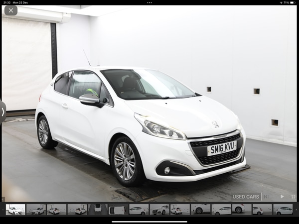 Insurance Group 19, 2 Previous Owners, stunning wee peugoet 208 1.2 allure with extra different seats bigger alloys privacy glass chrome pack touch screen sporty in 3 door in bright white very low insurance low tax 60 mpg ideal first time driver trade in welcome top price payed for your part exchange nil deposit low rate finiance available car coming in from England more photos to follow right colour right model comes fully checked and serviced and with 6 months peace of mind warranty tel 07955 514833 anytime