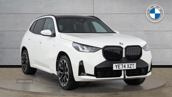 Coleraine0 Previous Owners, Boasting an incredibly low mileage, this 2024 BMW X3 20d M Sport represents an exceptional find. It comes with the desirable M Sport trim, featuring a sophisticated 2.0L Diesel Hybrid engine and Four Wheel Drive for assured performance. This Euro 6 compliant model also includes a luxurious instrument panel, a panoramic glass sunroof that opens for an airy cabin, and electric memory seats for personalised comfort. The Comfort Pack enhances your driving experience with automatic LED headlights and a premium branded sound system, while the Driving Assistant Plus package offers adaptive cruise control and blind spot assistance for added peace of mind.This BMW X3 excels with a remarkable fuel economy of 47 mpg, indicating its efficiency compared to similar vehicles. Its low CO2 emissions further highlight its environmentally conscious design. The generous boot space provides ample room for all your luggage or shopping needs, making it a practical choice for families and adventurers alike. With a substantial towing weight of 2500 kg, this X3 is also well equipped for carrying trailers or caravans. Mild Hybrid Technology, EU6 RDE II exhaust emissions standard, Auto transmission with gearshift paddles, Tyre Repair Kit, Variable Sport Steering, Alarm System, Comfort Access, Ambient Lighting, Luggage Net, M Decor Fine-Brushed Aluminium Interior, Electric Memory Seats, Sport seats, Heated front seats, Driving Assistant, Active Guard, Automatic Air Conditioning, BMW TeleServices, BMW Emergency Call, Storage for wireless charging, Personal eSIM, DAB Radio, M Sport Suspension, High-gloss Shadowline Exterior Trim, Anthracite Headlining, COC additional contents, Active Pedestrian Safety, English / on-board literature II, Specific additional contents in M Sport, M Sport exterior parts, M Sport interior parts, M Sport Package, Heated Steering Wheel, BMW Iconic Glow, 20'' 1036 M Light Double-spoke Bicolour A, BMW Individual Lights Shadow Line, M Sport Brakes with Red Calipers, Travel and Comfort System, M Sport Seat Belts, Interior Camera, Luxury Instrument Panel, Panoramic Glass Sunroof, Sun Protection Glass, Front Lumbar Support, Driving Assistant Plus, Parking Assistant Plus, Adaptive LED Headlights, Live Cockpit Pro with Head up Display, Harman/Kardon Surround Sound Audio, Indv. high-gloss shadowline- extended, Additional M Sport Package Pro Content, M Sport Pro Pack, Technology Pack, Comfort Pack. White 5 seats. BMW Approved Used Car