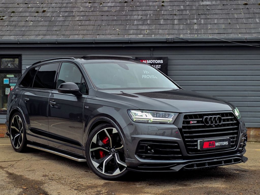 2 Previous Owners, STUNNING AUDI SQ7 FINISHED IN DAYTONA GREY BOASTING HUGE SPEC FROM FACTORY INCLUDING REAR ENTERTAINMENT, AMBIENT LIGHTING, ADAPTIVE CRUISE CONTROL, MATRIX LED, HEAD UP DISPLAY, BOSE SURROUND SOUND, PANORAMIC ROOF, CARBON INLAYS, DYNAMIC PACK AND MUCH MORE. LOVELY CONDITION THROUGHOUT. LOOKS SLEEK WITH THE MAXTON DESIGN KIT & SIDE STEPS AND MUST BE SEEN TO BE FULLY APPRECIATED! HERE AT A6 MOTORS WE PRIDE TO DELIVER GREAT CARS & A BETTER SERVICE. WE HAND PICK OUR CARS AND THEY ARE SUBJECT TO DETAILED CHECKS PRIOR TO SALE.WE ALSO PROVIDE A LONG MOT SO BUY WITH CONFIDENCE. 6,12,24 & 36 MONTHS EXTENDABLE WARRANTY AVAILABLE & THE OPTION OF DRIVE AWAY INSURANCE. ALL DEALER FACILITY ARE OFFERED & WE ARE OPEN 7 DAYS A WEEK. GREAT FINANCE PACKAGE AVAILABLE SO PLEASE INQUIRE WITH US. WE HAVE A DEDICATED AFTER SALES TEAM TO ASSIST WITH POST SALE INQUIRIES. LOCATED CONVENIENTLY IN BARTON LE CLAY BETWEEN LUTON & BEDFORD ON THE A6 BARTON ROAD, MK45 4RA. WE ARE EASY ACCESIBLE VIA THE M1 MOTORWAY. WE AIM TO BE BEDFORDSHIRES MOST COMPETITIVE DEALERSHIP. FINANCE FROM A THIRD PARTY COMPANY WILL BE SUBJECT TO A £399 ADMINISTRATION FEE. PLEASE CONFIRM WITH A MEMBER OF STAFF FOR AN ACCURATE SPEC LIST AS THE DATA IS PULLED FROM AUTOTRADER AND NOT ALWAYS CORRECT.Technology Package, Head-Up Display, Valcona Leather - Sports Seats Plus - Black, Audi Matrix LED Headlights, BOSE 3D Sound System, Audi Phone Box, Audi Entertainment Mobile, Daytona Grey, Dynamic Pack, Tour Pack, Rear Side Airbags, Advanced Key, Trailer Pack, Steering Wheel - 3-Spoke Leather - Multi-Function Flat Bottomed, Inlays - Carbon Atlas Sono, Removable Net Partition, Leather Package, Full Leather Package, Driver and Front Passenger Memory Function for the Electrically Adjustable Front Seats, Ambient Lighting, Red Painted Brake Calipers with S Logo, Heated Windscreen, Panoramic Glass Sunroof, Door Mirrors - Heated-Electrically Adjustable-Auto-Dimming with Memory Function, Black Styling Package, Black Roof Rails, 22in Alloy Wheels - 5-V-Spoke Aluminium Star Design - Titanium Diamond Cut, 20in Alloy Wheels - 5-Arm Off Road Design - Matt Titanium Look Gloss Turned, 7 Seats, AMI - Audi Music Interface, Active Sound Exhaust System, Adaptive S Air Suspension, Airbags - Front Side with Curtain, All Weather LED Headlights, Aluminium Roof Rails, Aluminium Scuff Plates with SQ7 Logo, Anti Theft Locking Wheel Bolts, Anti-Theft Alarm, Audi Connect - 3 Month Trial, Audi Connect Infotainment Embedded SIM, Audi Connect Safety and Service - e-call, Audi Drive Select, Audi Hill Hold Assist, Audi Parking System Plus, Audi Pre-Sense City, Audi Smartphone Interface, Audi Sound System, Audi Virtual Cockpit, Auto-Dimming Rear-View Mirror, Bluetooth Interface, Brake Calipers - Black with S Logo, Child Locks, Chrome Package, Cloth Headlining in Black, Comfort Front Centre Armrest, Cruise Control with Speed Limiter, DAB Digital Radio Reception, Deluxe Four-Zone Automatic Climate Control, Door Mirrors - Heated-Electrically Adjustable-Folding, Driver Information System with Colour Display, Driver and Front Passenger Airbag with Front Passenger Airbag Deactivation, Dynamic Rear Indicators, ESC - Electronic Stabilisation Control inc ABS - EBD - ASR - EDL, Electric Windows - Front and Rear, Electrically Adjustable 4-Way Lumbar Support, Electrically Adjustable Front Seats, Electromechanical Parking Brake, Electromechanical Power Steering, Exterior Mirror Housings in Aluminium Look, First Aid Kit and Warning Triangle, Front and Rear Floor Mats, Full Body-Colour Paint Finish, Gloss Package, Headlight Washer System, Heat Insulating Glass - Windscreen, Heated Front Seats, High-Beam Assist, Hill Descent Control, ISOFIX Child Seat Mounting, Interior Light Package, Keyless Go, LED Rear