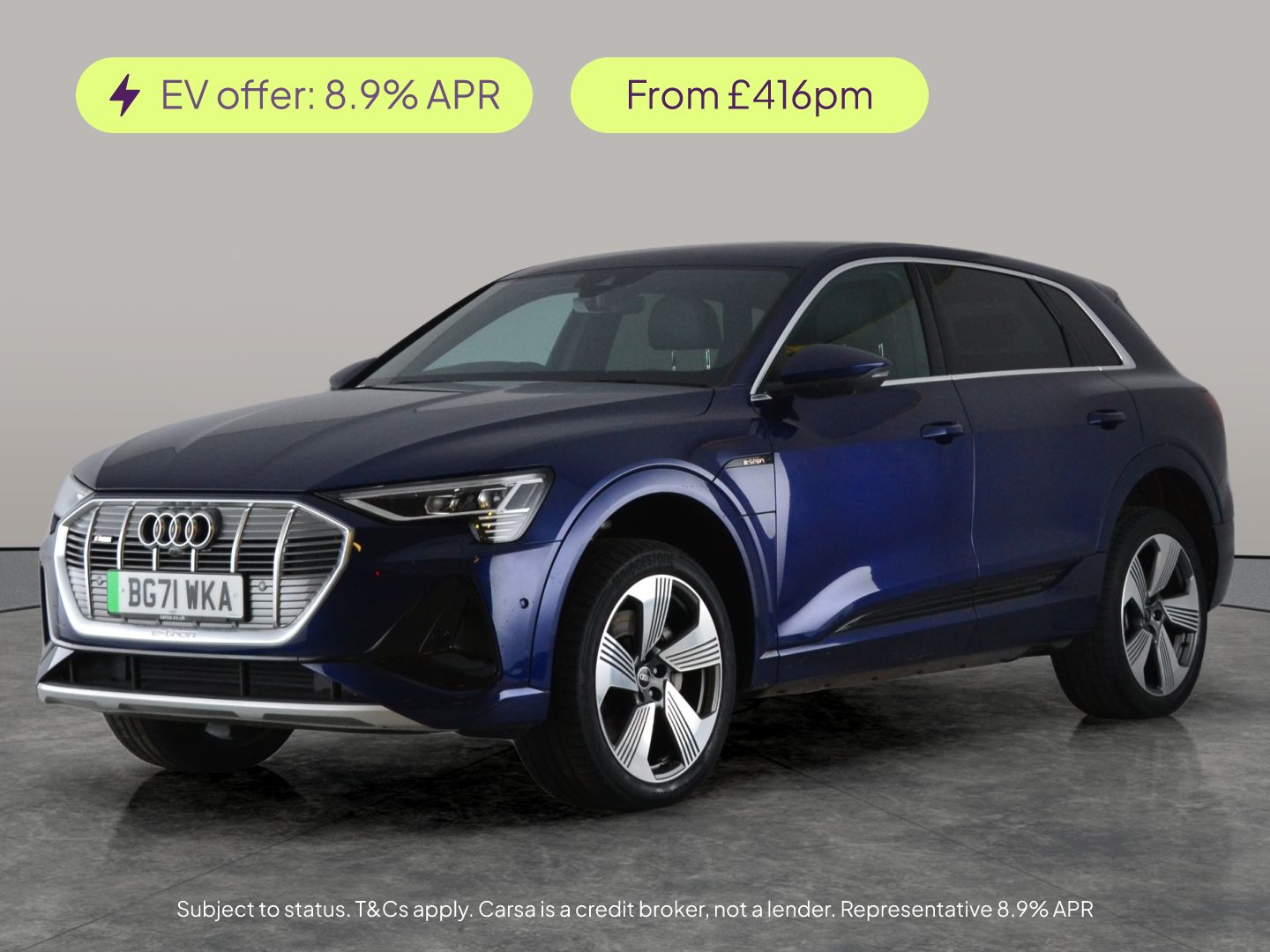 Gloucester0 Previous Owners, Experience luxury and performance with this striking blue Audi e-tron SUV. Enjoy standout features such as adjustable suspension for a smooth, tailored drive and stunning 21in alloy wheels. Inside, you'll find heated leather seats with electric adjustment and memory function, plus advanced tech like MMI Navigation Plus, LED headlights, Sat Nav, and a reversing camera. Stay safe and confident with lane departure warning and cruise control. Effortlessly practical, this e-tron also boasts an electric boot for easy loading. 2 services recorded, last serviced on 29/12/2025 at 24,608 miles. MOT to 03/12/2026. Visit our website for service history, online valuation, full vehicle specification plus multiple images. Certain features listed may be available via subscription packages at extra costs, please consult with Audi for details. This vehicle is VAT qualifying. Any feature/option specified here is from 3rd party data. We cannot guarantee the accuracy of any specification supplied by a 3rd party. We recommend that you physically check the specification of the vehicle on site prior to purchase. This information does not form part of the buying contract. Terms & Conditions apply. We have over 2,000 cars available from our 10 national branches, check our website to see all our stock. Our Trustpilot rating is 4.4/5 with over 9,000 reviews.