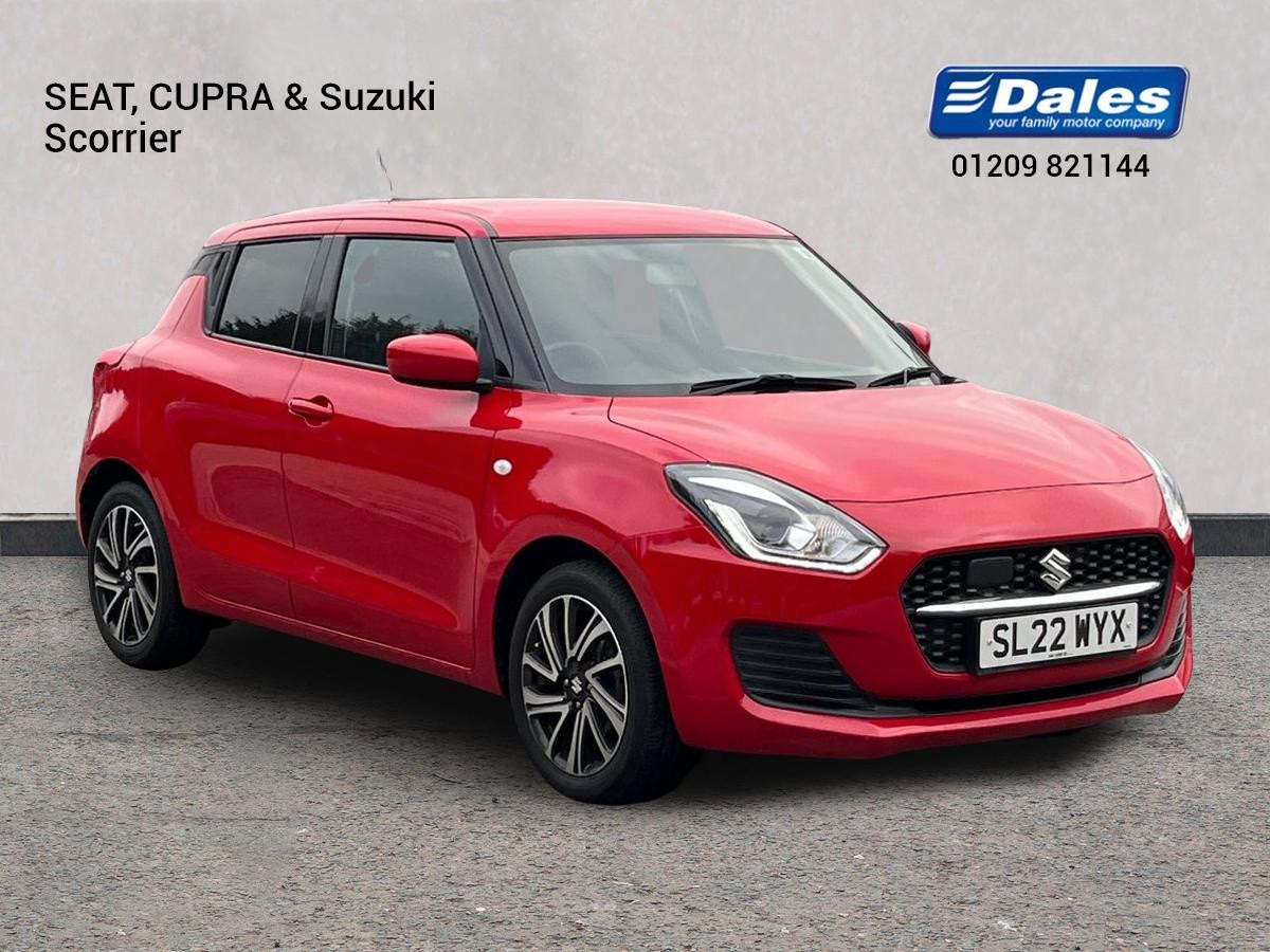 RedruthInsurance Group 20, 0 Previous Owners, The Suzuki Swift 1.2 Dualjet 83 12V Hybrid Sz-l 5Dr Hatchback in red is a stylish and efficient car. With only 18089 miles on the clock, this 2022 model is packed with features to enhance your driving experience. It comes with 'Guide me home' headlamps, 16" polished alloy wheels, and LED daytime running lights. Inside, you'll find a well-equipped cabin with air conditioning, DAB digital radio, and smartphone integration with Apple CarPlay and Android Auto. Safety features include ABS, adaptive cruise control, radar brake support system, and rear parking camera. The Suzuki Swift also offers comfort and convenience with features like a leather-covered steering wheel, 60/40 split rear seats, and plenty of storage options including door pockets and a glovebox. This hatchback is perfect for city driving and daily commutes, offering a blend of practicality and fun behind the wheel.