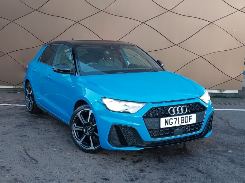 GlasgowInsurance Group 19, Audi smartphone interface with connect compatible smartphone via USB directly MMI display + Nav,music, third party apps controlled via MMI controller, Audi drive select - power steering assistance + engine + gear shift 3 preset modes (auto, dynamic, efficiency and an Individual mode), Audi connect safety emergency and service including E-call, 10.25" Digital instrument cluster display classis style instrument dials + speed,odometer,time,outside temperature,telephone menu + fuel level warning, Bluetooth interface, Cruise control, Lane departure warning system, Voice control system, DAB Digital radio, MMI radio plus with 8.8" colour MMI display screen and MMI touch, Auto dimming rear view mirror, Electrically adjustable, heated, folding door mirrors with integrated LED side indicator, LED headlights with LED rear lights + dynamic rear indicators + headlight adjustment and high beam, turning light + LED daytime running lights, Rain and light sensors, ISOFIX child seat mounting for front passenger and outer rear seats including top tether attachment point of outer rear seats, 3 spoke flat bottomed multi-function plus leather steering wheel with S badging, grips in preforated leather, contrast stitching and paddle shift, Luggage compartment pack - A1, LED interior lighting pack - A1, Black styling pack - A1 Sportback Black Edition, Tyre pressure warning light, Hill hold assist