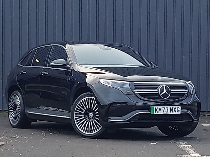 0 Previous Owners, Mercedes Benz sound system with 4 mid range speakers, 2 tweeters, 2 Frontbass speakers, 1 centre speaker and 225 W amplifier output, MBUX multimedia system with 10.25" instrument and 10.25" media display with touchscreen, EQ navigation services - map (range display), display charging stations, programming of charging settings and pre entry climate control, Heated front seats, Active lane departure warning system, Multibeam LED headlights with inner housing and high gloss black tubes/blue stripes, adaptive highbeam assist +, cornering and cross traffic functions, Electric sliding sunroof, Smartphone integration, Mercedes me connect, 3 spoke AMG multifunction sports steering wheel in nappa leather with chrome control panels and flattened bottom section with perforated grip area, Daytime running lights, Mercedes Benz emergency call system, Hard-disk navigation, Electronic Power Steering (EPS), Easy-pack tailgate, Acoustic ambient protection, DYNAMIC SELECT with a choice of driving modes (max range, ECO, comfort and sport), Energizing package - EQC, Cruise control, Interior light package - EQC, Blind spot assist, Comfort suspension with self levelling rear air suspension, Seat comfort pack - EQC, DAB Digital radio, AMG specific black panel radiator grille with twin blade design and high gloss black surround, AMG specific front apron with jet wing design, visible air intakes with chrome trim parts and high gloss black inserts and air curtains, AMG specific rear apron with visible air outlets, black diffuser insert and chrome trim elements, Badge on the wing in high gloss black with chrome stripes and blue EQC lettering, Front and rear LED light band, Stowage package - EQC, Interior lighting - 64 colour Ambient lighting, Leather upholstery, Dashboard in ARTICO man-made leather with metallised look finish and rose gold piping, AMG sports seats, AMG brushed stainless steel sports pedals with black rubber studs, Parking package with active park assist with reversing camera - EQC, Mirror package with heated door mirror - EQC, Keyless go comfort package - EQC, Air balance package - EQC, Urban guard vehicle protection, 21" AMG mutli spoke alloy wheels painted black with high sheen finish, Anthracite carbon fibre look trim with high gloss centre console