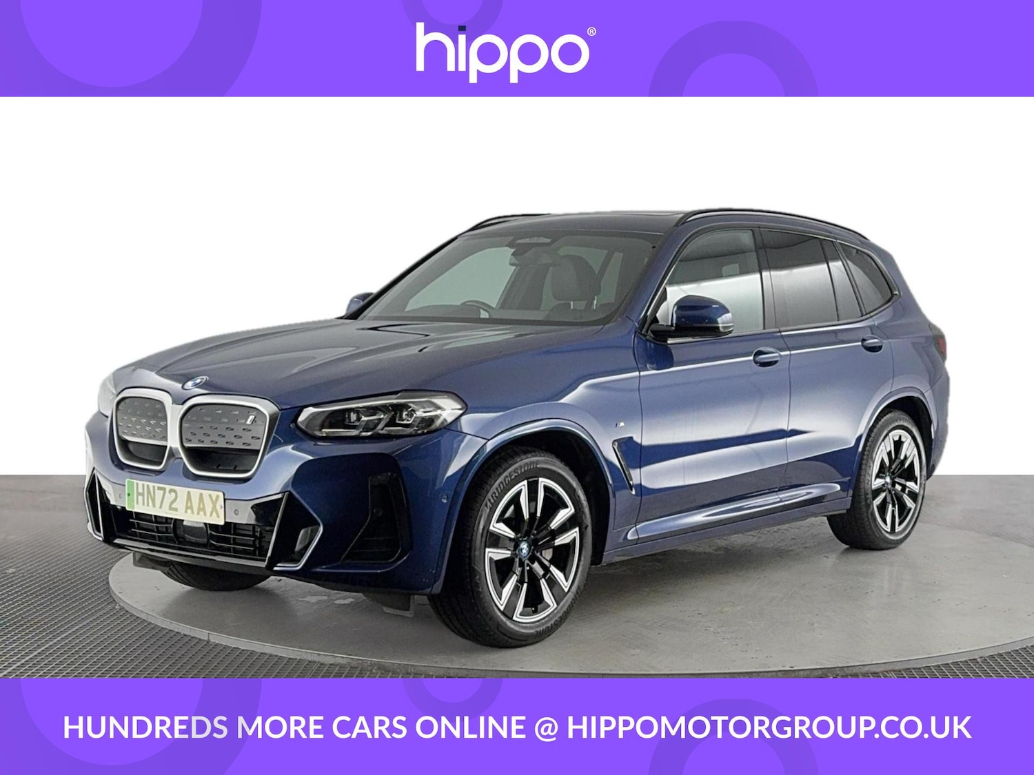 BlackburnInsurance Group 44, 1 Previous Owner, Presenting this BMW iX3 80kWh M Sport SUV 5dr Electric Auto (286 ps) in Phytonic Blue, with 38,241 miles on the clock. Enjoy impressive efficiency and performance from its fully electric powertrain, complemented by smooth automatic transmission. The exterior is enhanced by 19-inch aerodynamic Jet Black alloy wheels with bi-colour inserts, offering both visual appeal and improved efficiency. Practicality is assured with front and rear parking sensors, making urban driving and tight manoeuvres more straightforward. This SUVs M Sport trim ensures a refined driving experience, while the five-door layout provides versatile space for passengers and luggage. The iX3s advanced features and engaging drive deliver comfort and convenience in every journey. Hippo Approved is known for a wide selection of vehicles suited for various needs and budgets. Each car undergoes a rigorous 130-point quality and safety inspection at our state-of-the-art 3 million preparation centre, ensuring your peace of mind. Additionally, we offer tailored finance packages for personal and business use, making it easy to acquire your ideal car.