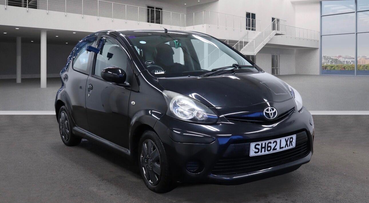 Insurance Group 3, 2012 Toyota AYGO 1.0 VVT-i Ice ULEZ CompliantThis 2012 Toyota AYGO VVT-i Ice is a smart and economical hatchback, supplied with a clear HPI check for complete peace of mind. Powered by a reliable 1.0-litre petrol engine, its perfectly suited to city driving, commuting, and first-time ownership.The Ice trim offers practical everyday features, including air conditioning for year-round comfort and Bluetooth connectivity for hands-free calls and music streaming.The vehicle delivers excellent fuel efficiency of up to 66 mpg, alongside low CO emissions and a low insurance group, making it a very cost-effective choice to run and maintain.The car will be supplied with a full 12 months MOT and has part service history.Key Features:Air ConditioningBluetooth (hands-free & audio)ULEZ CompliantLow Insurance GroupEconomical 1.0L Petrol EngineAdditional Benefits:12 months FREE basic AA breakdown cover3 months warranty included, with extended warranty options available5-day drive-away insurance available (T&Cs apply)HPI clearPart exchange welcomeFinance options availableNationwide delivery available at competitive ratesOpen 7 days a week, 9am8pm (appointment only)All used vehicles are subject to a documentation fee. Contact us today to arrange a test drive or discuss delivery options.
