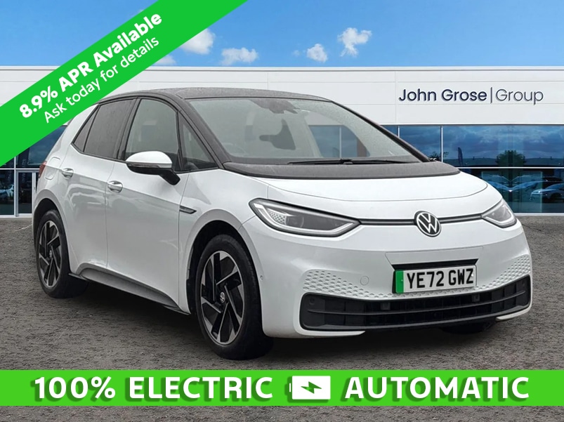 Insurance Group 29, 0 Previous Owners, ..10'' touch screen infotainment system, 5.3'' Digital dashboard display, Adaptive cruise control including Front Assist, radar sensor controlled distance monitoring system, City emergency braking system,speed limiter, BLIS (Blind spot information system), Bluetooth connectivity, Car2X technology, Driver alert system, Driver profile selection with personalisation, Ecall, Front and rear parking sensors, ID. Light, Lane assist, Natural voice control, Power assisted speed sensitive steering, Remote tailgate unlocking, Security and service (SOS buttons), Trip computer, Wireless app connect, Exterior esound, Mode 3 32amp / 7.2kW charging cable for charging at public charge points, DAB Digital radio, Sound system, Touch control, Body colour door handles, Body coloured bumpers, Body coloured door mirrors with intergrated indicators, Front and rear electric windows, Heated rear window, LED 3rd brake lamp, Rear side wing doors, Rear wiper, Separate LED daytime running lights which also perform the indicator function, Variable front intermittent wipers, 3 seat bench in 2nd row, Flow design/Art velour microfleece cloth upholstery, Folding rear seats, Front headrests, Isofix child seat anchor points, Leather steering wheel, Multifunction steering wheel, Pause and play pedals, Pockets and smartphone pockets in seats, Reach + rake adjustable steering column, Rear headrests, Single front passenger seat, Style seats, Assistance pack ID.3, Comfort plus pack ID.3, Design plus pack ID.3, Infotainment pack with wireless smartphone charging ID.3, Interior style pack ID.3, NCAP pack ID.3, 3x3 point rear seat belts, Antilock braking system (ABS), Child locks on rear doors, Driver and passenger airbags, Electronic parking brake with auto hold, Electronic Stability Programme (ESP), Front and rear curtain airbags, Front passenger airbag deactivation, Side airbags, Traction control with on/off button, Tyre pressure monitor, Alarm, Immobiliser, Remote central locking, Tool kit, Tyre repair kit