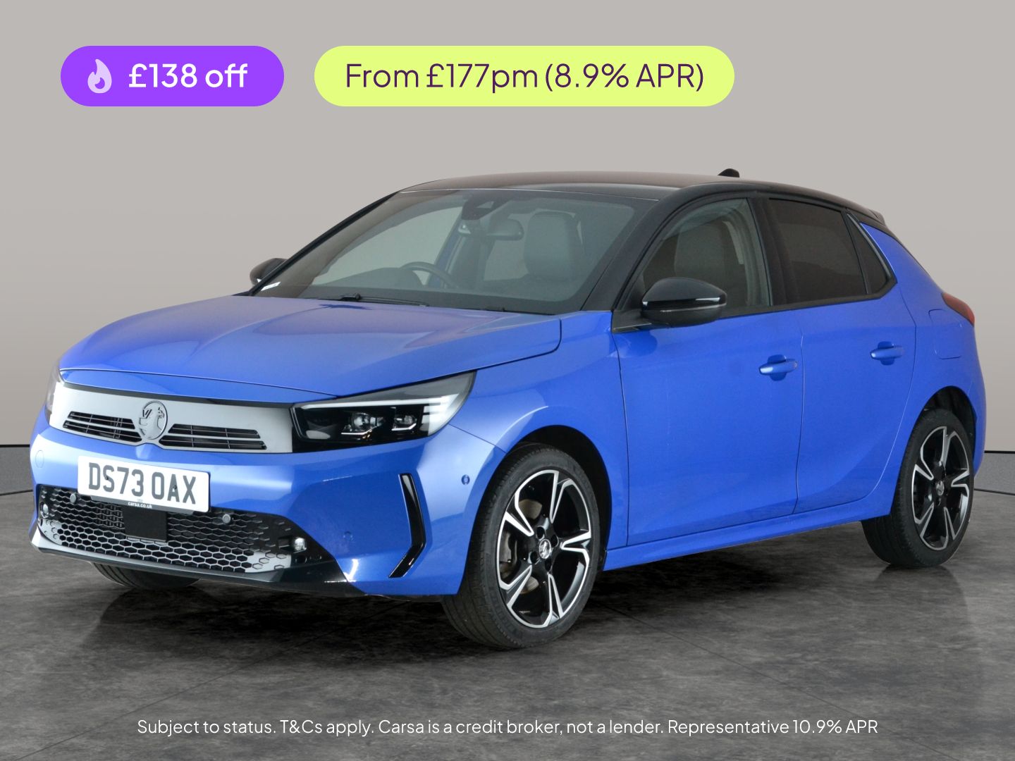 TowcesterInsurance Group 19, 0 Previous Owners, Experience comfort and style with this Vauxhall Corsa. Enjoy luxury with massaging and heated seats, plus a heated steering wheel for chilly mornings. Stay connected with Apple CarPlay and Bluetooth audio streaming. Drive with confidence thanks to LED headlights, a reversing camera, and blind spot assist. The keyless entry and digital dashboard add a modern touch, while cruise control and selectable driving modes make every journey effortless. This sporty blue hatchback blends technology, practicality and fun. 2 services recorded, last serviced on 18/12/2025 at 12,054 miles. MOT to 31/10/2026. Visit our website for service history, online valuation, full vehicle specification plus multiple images. This vehicle is VAT qualifying. Any feature/option specified here is from 3rd party data. We cannot guarantee the accuracy of any specification supplied by a 3rd party. We recommend that you physically check the specification of the vehicle on site prior to purchase. This information does not form part of the buying contract. Terms & Conditions apply. We have over 2,000 cars available from our 10 national branches, check our website to see all our stock. Our Trustpilot rating is 4.4/5 with over 9,000 reviews.