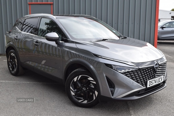 Lisburn0 Previous Owners, The Nissan Qashqai 1. 3 DiG-T MH 158 N-Connecta 5dr Xtronic is a versatile and well-regarded choice for those seeking a reliable and efficient petrol-powered vehicle with automatic transmission. With its intelligent driving systems, such as the ProPilot Assist with Navi-Link and Intelligent Cruise Control, this model offers enhanced safety and comfort on every journey. The inclusion of features like the 360-degree Intelligent Around View Monitor and Blind Spot Warning ensures a confident and smooth driving experience. The grey exterior of this Qashqai is complemented by stylish touches like chrome side window finishers and body-coloured door handles. The aesthetic appeal is further enhanced by LED headlights and rear lights, a rear roof spoiler, and a shark fin antenna. The silver roof rails and gloss black mirror caps add a contemporary touch, while the rear privacy glass provides additional comfort and discretion. Inside, the Qashqai combines functionality and comfort with options such as dual-zone automatic climate control and cloth upholstery. The interior is thoughtfully designed with a multifunction steering wheel, electrically adjustable lumbar support for the driver, and a smooth leather steering wheel. Advanced connectivity is ensured through the Nissan Connect 12. 3-inch touchscreen infotainment system and wireless Apple CarPlay/Android Auto. Safety features are abundant, including intelligent forward collision warning, lane departure warning, and a comprehensive airbag system, making this vehicle a wise choice for the safety-conscious driver