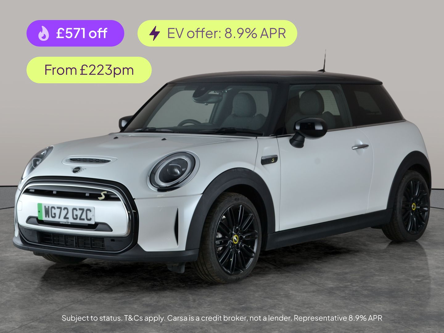 0 Previous Owners, Experience electric driving fun in this striking white Mini Electric Hatch Cooper SE. This stylish 3-door features optional Black Pearl cloth-leatherette seats and matching black roof and mirror caps for a bold look. Enjoy top features like keyless entry, LED headlights, a reversing camera, heated seats, and cutting-edge navigation. The 17in Tentacle Spoke black alloy wheels add an extra sporty touch. Discover effortless journeys with cruise control, multiple driving modes, Bluetooth connectivity, and a thoughtfully designed storage pack. MOT to 16/12/2026. Visit our website for service history, online valuation, full vehicle specification plus multiple images. This vehicle is VAT qualifying. Any feature/option specified here is from 3rd party data. We cannot guarantee the accuracy of any specification supplied by a 3rd party. We recommend that you physically check the specification of the vehicle on site prior to purchase. This information does not form part of the buying contract. Terms & Conditions apply. We have over 2,000 cars available from our 10 national branches, check our website to see all our stock. Our Trustpilot rating is 4.4/5 with over 9,000 reviews.