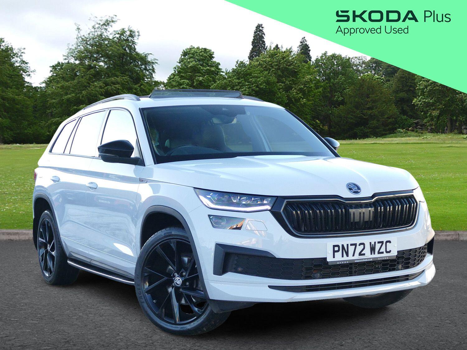 Insurance Group 20, 1 Previous Owner, Franchise Approved, Introducing this 2022(72), Skoda Kodiaq SportLine 1.5 TSI 150PS DSG automatic finished in Moon White Metallic with the 20'' Vega Anthracite alloy wheels. Supplied by ourselves from new and benefits from a full Simpsons Skoda service history, giving the new owner peace of mind knowing this example has been well cared for. This example is equipped with a wide range of optional extras, including a panoramic sunroof, virtual cockpit and an electronically folding tow bar with adaptor, making it well suited for a variety of towing requirements. Cruise control with a speed limiter supports relaxed and controlled motorway driving, while front and rear parking sensors combined with a rear view camera simplify manoeuvring in tighter spaces. Dual zone climate control works in harmony with heated front seats to deliver a comfortable and refined cabin environment in all conditions. The electronically adjustable drivers seat with memory function allows you to return to your preferred seating position effortlessly every time you drive. Further enhancing everyday convenience, a space saving spare wheel offers added peace of mind, while 2 USB C ports and a wireless charging pad ensure your devices remain powered while on the move. ULEZ compliant. Part exchanges welcome. As a family-owned business with over 80 years of experience, the Simpson family has looked after the motoring needs of Lancashire since 1944. We are driven by customer satisfaction and all our cars are carefully prepared to our own and Skoda's exacting approved standards, both mechanically and cosmetically, additionally with a minimum of 12 months warranty, 12 months breakdown roadside assistance and minimum 6 months MOT. For more information, to book your test drive or to request a personalised walk-around video of a vehicle, please contact our team at Simpsons Skoda Preston.