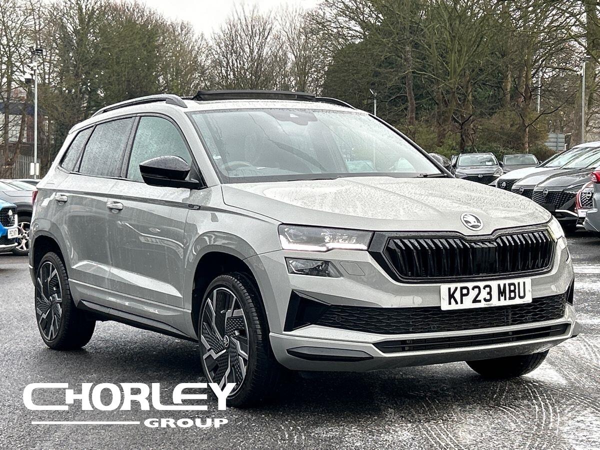 Insurance Group 19, 1 Previous Owner, Available for you to view and test drive or reserve online, this Skoda Karoq SportLine finished in Grey presents an exceptional opportunity with its remarkably low mileage. This Euro 6 compliant 1.5 litre petrol engine model, finished in the SportLine trim, offers a compelling blend of style and practicality. Inside, youll find the Amundsen Package Plus, which includes convenient wireless phone charging, and the Light Package featuring LED headlights for enhanced visibility. Comfort is further assured with heated front seats, a heated sports steering wheel, and the expansive panoramic glass sunroof. Parking is made effortless with the help of the rear view camera and front/rear parking sensors. Keyless entry and start stop system allows for effortless access and operation, and get guidance on the go with Sat Nav. Above are only a few of our favourite features, but we know youll find your own when you get hands-on in branch. Why buy from us Heres our 5 point promise to you: Vehicle provenance check A minimum 3-month warranty A thorough multi-point inspection Full showroom valet before delivery Tyres, brakes and service to schedule You can also take advantage of our Chorley Care service that allows you to purchase additional warranty for total peace of mind. If youve got a part exchange, wed love to take it off your hands. Well do a professional appraisal and give you the best price guaranteed. You can also see how much your car could be worth via a...