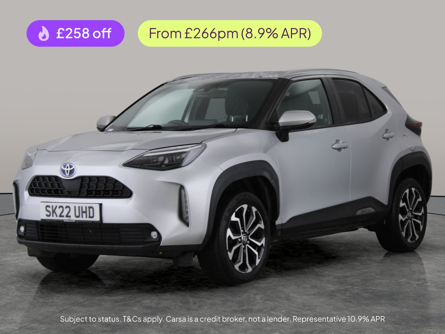 Insurance Group 12, 1 Previous Owner, Discover the Toyota Yaris Cross Design in stylish silver, blending hybrid efficiency with advanced features. Enjoy seamless connectivity with Apple CarPlay, added peace of mind thanks to the reversing camera, and adaptive cruise control for relaxed motorway journeys. Lane Trace Assist keeps you confidently on track, while the spacious interior is always comfortable with climate control and air conditioning. Stand out on 17in alloy wheels and stay connected with integrated Bluetooth. An ideal companion for daily adventures. 3 services recorded, last serviced on 18/12/2025 at 28,306 miles. MOT to 21/12/2026. Visit our website for service history, online valuation, full vehicle specification plus multiple images. Any feature/option specified here is from 3rd party data. We cannot guarantee the accuracy of any specification supplied by a 3rd party. We recommend that you physically check the specification of the vehicle on site prior to purchase. This information does not form part of the buying contract. Terms & Conditions apply. We have over 2,000 cars available from our 10 national branches, check our website to see all our stock. Our Trustpilot rating is 4.4/5 with over 9,000 reviews.