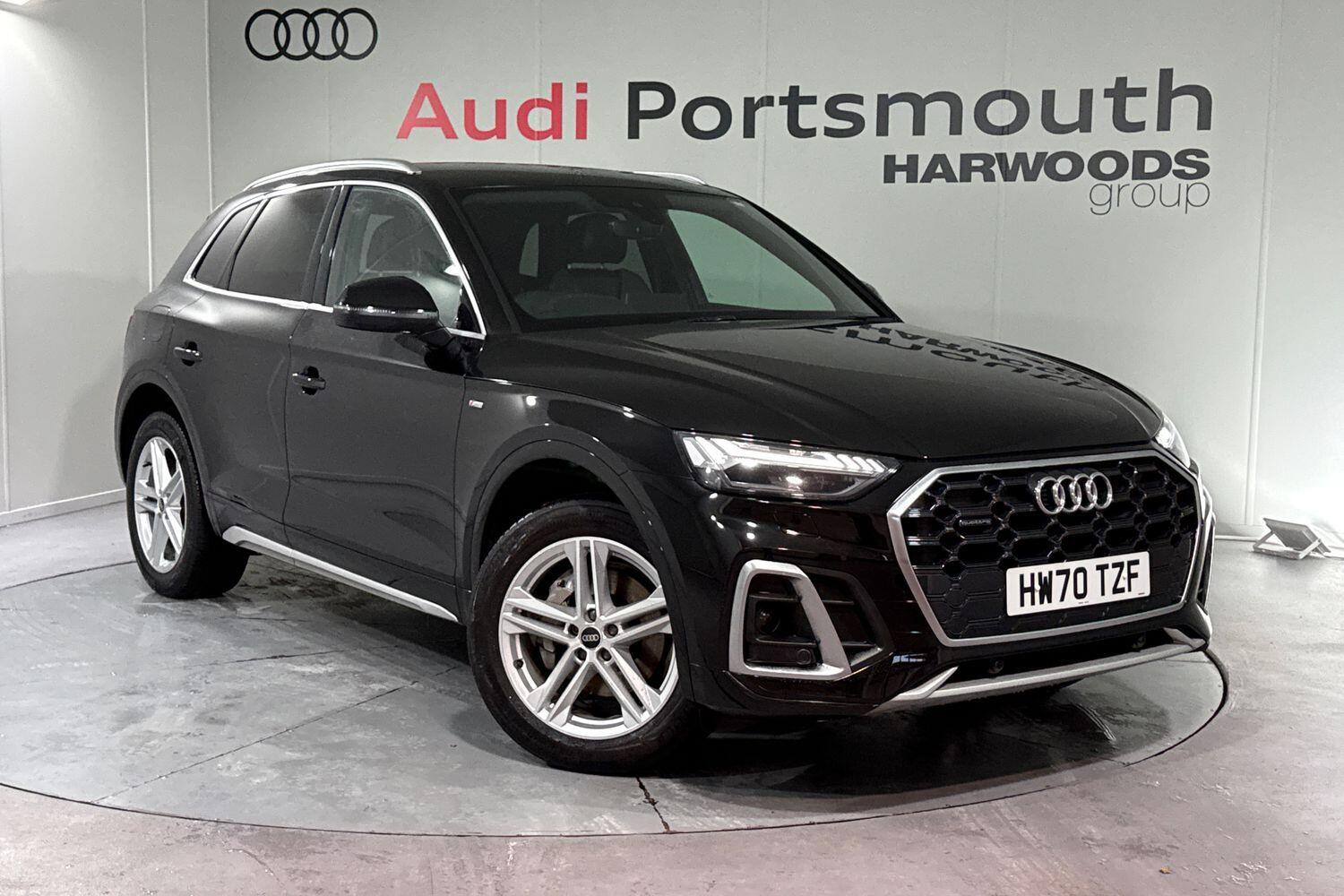 PortsmouthInsurance Group 35, 2 Previous Owners, Franchise Approved, SATELLITE NAVIGATION, FULL AUDI SERVICE HISTORY, REAR PARKING CAMERA, MULTI FUNCTION STEERING WHEEL, HILL HOLD ASSIST, CRUISE CONTROL, AUDI VIRTUAL COCKPIT, LANE DEPARTURE WARNING, APPLE CARPLAY, ANDROID AUTO, DAB RADIO, TINTED WINDOWS - PRIVACY GLASS, FRONT AND REAR PARKING SENSORS, SPLIT FOLDING REAR SEATS, LIGHT & RAIN SENSOR, AUTO DIMMING REAR VIEW MIRROR, SELECTABLE DRIVING MODES, PUSH BUTTON START, MYTHOS BLACK METALLIC WITH LEATHER/ALCANTARA UPHOLSTERY, 19'' DIAMOND CUT ALLOY WHEELS, DUAL ZONE CLIMATE CONTROL, HEATED FRONT SEATS WITH LUMBAR SUPPORT, LED HEADLIGHTS WITH DYNAMIC REAR INDICATORS, VOICE ACTIVATED CONTROLS AND MUCH MORE.All Audi Approved used cars are offered with a 12-month warranty and roadside assistance.Portsmouth Audi are delighted to offer this Audi Q5 in Mythos Black over Alcantara/ Leather and has completed just 41478 miles., We are proud to be part of the Harwoods group, a family run business established in 1931. With four Approved Audi retailers within our group, we have access to over 400 vehicles. If this isn't the right car for you, please contact us and we will find it. Our group stock has spec to include Sunroof, Leather, Heated Seats, Apple Car Play, Heated Steering Wheel, Reverse Camera, Rear Entertainment, Towbar, 360-degree camera, Comfort & Sound Pack, Tech Pack, Panoramic Sun Roof, Tow Bar, Black Pack, Air Suspension, Apple Carplay, Adaptive Cruise, Massage Seats, Refrigerator, AWD, Technology Pack, Head up Display, Vorsprung, Technik, Black Edition, S-Line, S Line, Edition 1, TFSI, Quattro, Sportback, LWB. Other colour options including Black, Blue, Green, Silver, White, Red, Grey, Yellow, Orange. Interior options of Ebony, Black, Ivory, White, Tan, Cream, Oyster, & Euro 6 ULEZ compliant drive trains.