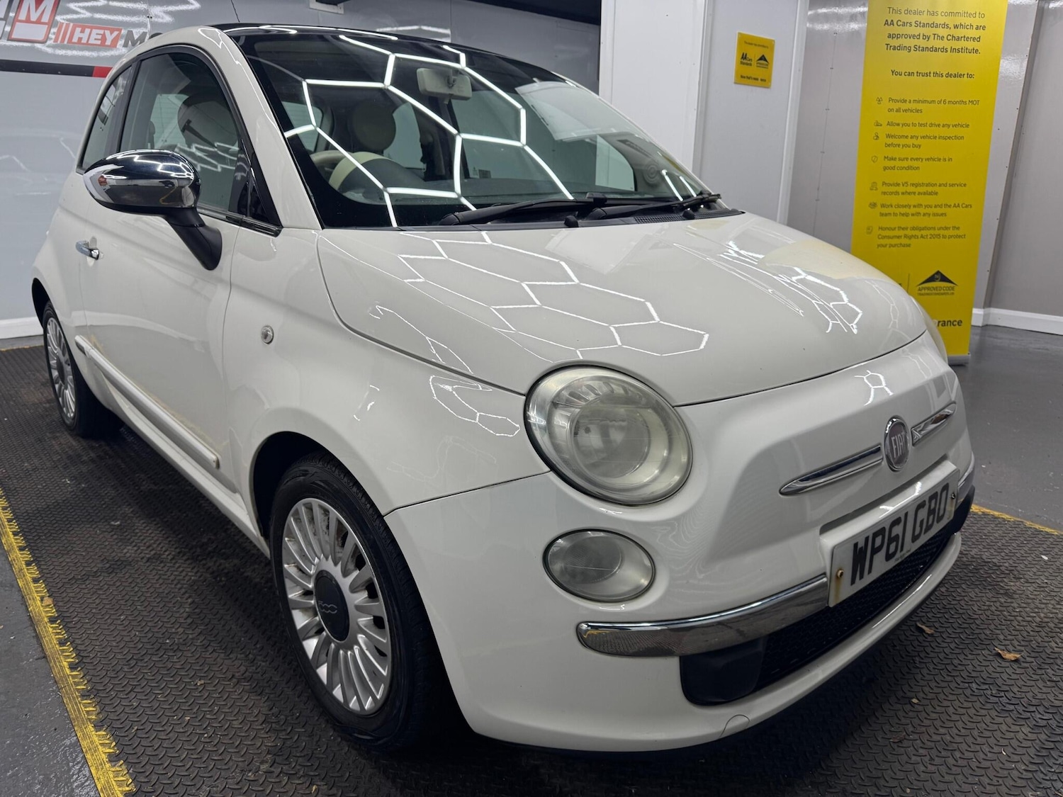 HeywoodInsurance Group 12, 2 Previous Owners, This 2012 Fiat 500 Lounge is a truly special find, boasting exceptionally low mileage for its age at just 65,310 miles. This particular Lounge variant is powered by an efficient 0.9L petrol engine and comes equipped with stylish body coloured side rubbing strips featuring the iconic 500 logo. Inside, you'll appreciate the comfort of Air Conditioning and the convenience of the Blue&Me Hands Free System with a USB port, allowing for seamless Bluetooth connectivity. Adding to the charm is the Fixed Glass Roof with a Sunblind, offering an open and airy cabin experience.This Fiat 500 Lounge stands out with its impressive fuel economy, achieving a remarkable 69 miles per gallon, which is a significant advantage over many other vehicles in its class. Furthermore, its low CO2 emissions contribute to a more environmentally friendly drive. These highlights demonstrate how this Fiat 500 offers both economical running costs and a pleasant driving experience, making it a sensible choice for everyday use.