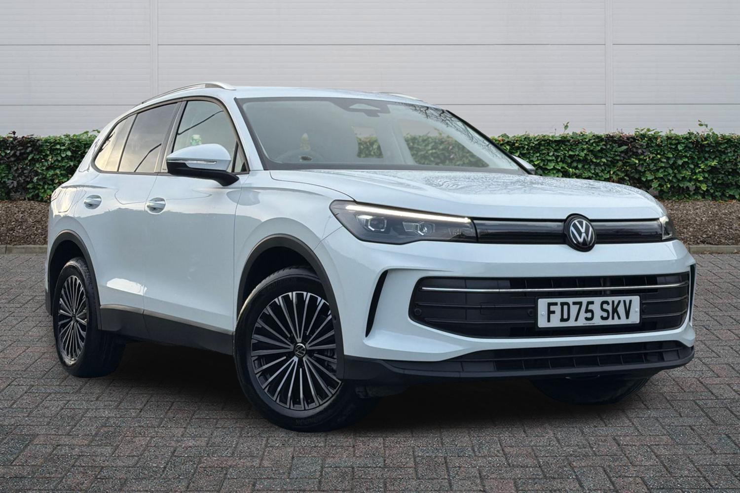 Ex-Demo, 1 Previous Owner, Franchise Approved, Available from 31/03/2026. Volkswagen Tiguan Estate 1.5 eTSI 150 Match 5dr DSG in Pure White. Specification Includes Exterior Features,Heat insulating glass in side and rear windows,Heat insulating windshield,Heated rear window,Rain sensor windscreen wipers,Rear wiper,Front wheel drive,Body coloured bumpers and air intake with chrome trim,Body coloured door handles,Illuminated door handle recesses,Rear side wing doors,Automatic headlight control system,Coming/leaving home lighting function,High level 3rd brake light,Illuminated lightline between headlamps,Rear fog light on one side- reversing light on both sides,Safety,Electronic parking brake with auto hold,Front disc brakes,Hill start assist,Rear disc brakes,Adaptive cruise control (ACC),Advanced driver attention and drowsiness monitor,Dynamic road sign display,Front Assist - Autonomous emergency braking with pedestrian and cyclist monitoring,Lane change system- Side assist- Rear traffic alert and Exit warning system,Lane keeping system Lane Assist,Oncoming vehicle braking when turning including swerve support,Park assistance plus with front and rear parking sensors,Power assisted steering with speed sensitive,Auto dimming interior rear view mirror,Body-coloured exterior mirror housings,Puddle lights and reverse activated passengers door mirror,3 point seat belt for centre rear seats,3 Point seat belts in front with pretensioners,3 point seatbelts in outer rear with ECE label,Driver and front passenger airbag with front passenger airbag deactivation,Front and rear curtain airbags,Front and rear side airbags,Front centre airbag,Manual child proof rear door locks,Two tone horn,Warning triangle,Interior Features,Carpet mats- front and rear,Air care climatronic 3 zone air conditioning system with rear air conditioning control panel,12V outlet in center console rear and in luggage compartment,12V socket in centre console,Ceramique headlining,Door and side trim panel in foam film and woven fabric,Front centre armrest,Variable luggage compartment floor,Sun visors with illuminated vanity mirrors,Audio / Communications,Bluetooth mobile phone interface,E-Sim card for online connectivity,Wireless App-Connect,Digital radio reception (DAB),Diversity antenna for FM reception,Driver Convenience,Car2X technology,Start/stop system with regenerative braking,Miscellaneous,Digital Cockpit Pro - 10.25in high resolution dash display screen with customisable menus and information,eCall emergency call service,Warning signal