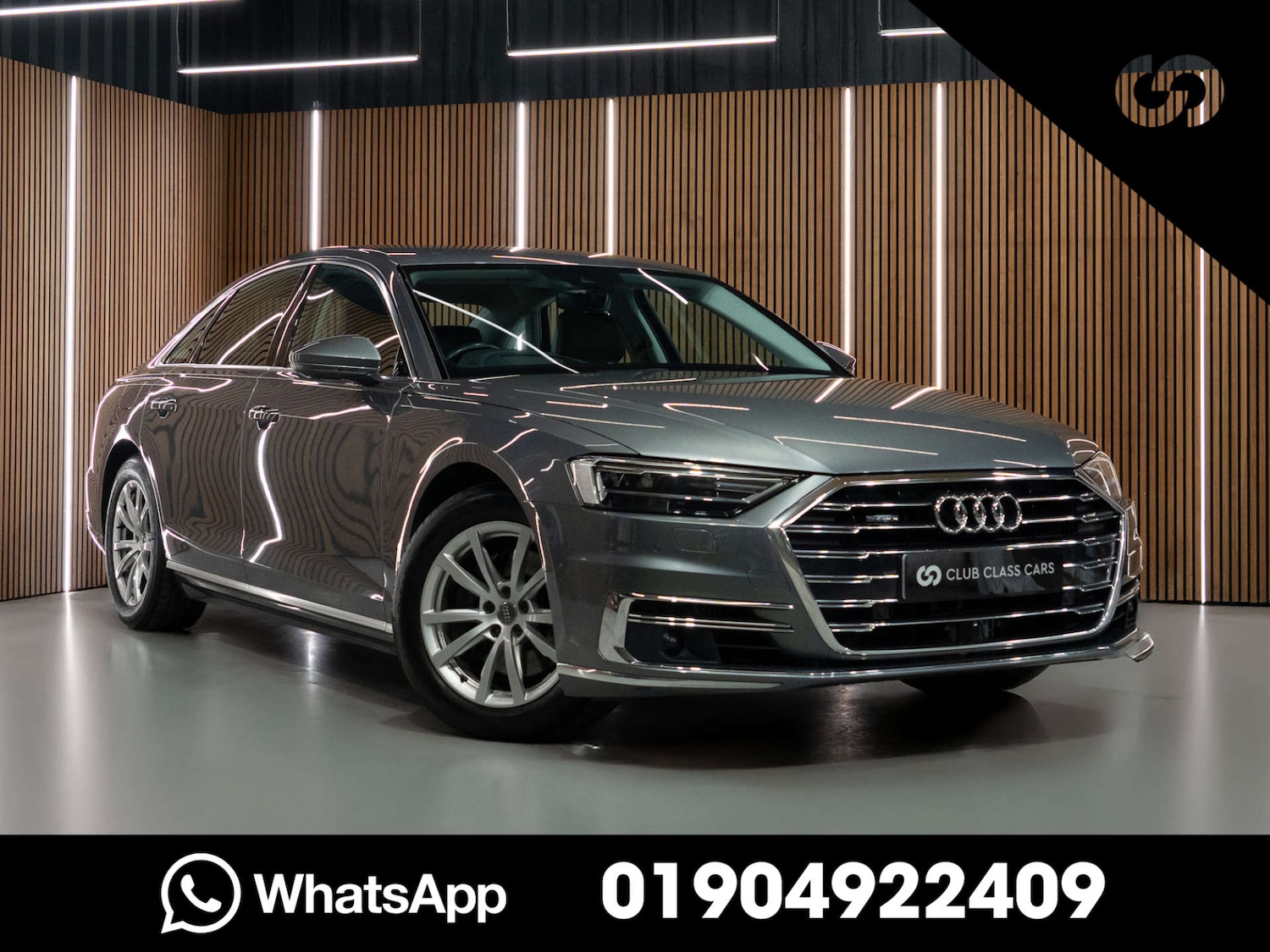 Yorkshire1 Previous Owner, 2019 Audi A8 3.0 TDI V6 50 Diesel Tiptronic quattro in Monsoon Grey with 2 owners and just over 59,500 miles.Great spec including Soft Closing Doors, Adaptive Cruise Control, Turn Assist, Audi Active Lane Assist, Traffic Jam Pilot, Black Valcona Leather Interior with Heated and 22-Way Electric Memory Front Seats, Head-Up Display, Audi Virtual Cockpit, MMI Navigation Plus, Audi Smartphone Interface with Apple CarPlay / Android Auto, DAB Digital Radio, Audi Phonebox with Wireless Charging, Power Tailgate, Electric Folding Mirrors, Adaptive Air Suspension, Keyless Entry, LED Headlights, Reversing Camera etc.Full Audi Dealership Service History with previous services completed as follows;- 20/7/2020 @ 20,344 miles- 7/5/2022 @ 29,615 miles- 18/11/2023 @ 45,341 miles- 22/11/2024 @ 55,314 milesWill come with a new 12 month MOT. ------------------------------------------------------------------------This vehicle is available to purchase for the fixed price displayed on the advert. Walk around video via WhatsApp available on request. - Please Note: We are a fixed price business, no offers please - Payment in Cryptocurrency available- 3 Month Warranty included unless the vehicle is still covered by manufacturers warranty- Extended Warranties up to 24 months- Ceramic Coating available- All vehicles HPI Clear- Finance Available including PCP & HP (£299+vat admin charge for arranging finance externally) Great care is taken to ensure the specification displayed for each vehicle is correct, however due to the way data is imported from Third Party companies from time to time errors may occur. Club Class Cars (York) Limited take no responsibility or liability for such errors in the listing and we advise you to check and satisfy yourself with the full specification independently.