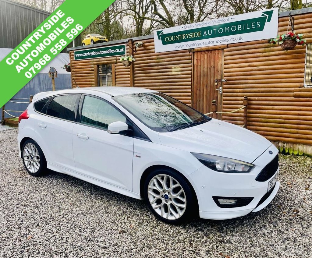 WaterfootInsurance Group 12, Boasting an exceptional main dealer service history and a clear vehicle history check, this 2017 Ford Focus T ST Line presents a superb ownership proposition. With only 53,000 miles on the clock, this Euro 6 compliant 1.0L petrol model comes with a comprehensive 24 month warranty and an MOT valid until November 2026. Its full dealership service history, with the last service completed on 2025-11-10 at 52,649 miles, ensures peace of mind. Notable features include a rear view camera with parking assistance, blind spot information system, a convenience pack with front and rear parking sensors, and a driver assistance pack with automatic headlights. Also has the 18inch wheel upgrade. Full specification the only possible option it hasnt got is door edge protectors. This Ford Focus ST Line offers impressive efficiency, achieving a remarkable 60 mpg, which is significantly better than many similar vehicles. Its low CO2 emissions further contribute to its economical running costs. Youll also appreciate the generous boot space, making it a practical choice for everyday use and longer journeys. The combination of its low mileage for its age, extensive service record, and advanced features makes this Focus a standout option. Stunning example that has always been maintained at Ford main dealer, and will come with 24 months parts and labour gold cover warranty. All our vehicles over £3000 come with our 5 Star package! * Full service with new oil, oil filter, air filter and pollen filter, and brakes, lights and levels checked. * Minimum of 9 Months MOT or a will have a Brand new one! * 6 Month comprehensive parts and labour warranty F.O.C.! * Full valet prior to collection! * HPI Clear with PDF Report (unless clearly stated otherwise) Extended warranties available at competitive rates. Give us a call to make your next purchase a special purchase. FCA Regulated, Finance available Subject to status! 5 Day Driveaway insurance available at small cost (circa £30) to get you on the road sooner than you think. Secure any car with a small deposit. Airport/Train station collection service All our Part X to clear cars (under £3000) come with our Budget 4 star package! * Minimum of 5 Months MOT or a will have a Brand new one! * Lights and levels checked! * HPI Clear with PDF Report (unless stated) * 3 months Major mechanical parts warranty.AUTO CLIMATE CONTROL REVERSING CAMERA, FULL SERVICE HISTORY JUST SERVICED, FROZEN WHITE PARKING SENSORS , 60 MPG COMBINED PRIVACY GLASS, 24 M PARTS + LABOUR GOLD COVER WARRANTY, Rear View Camera, Blind Spot Information System, Active City Stop, Convenience Pack, 18in Alloy Wheels - ST-Line - Rock Metallic, View Cloth - Charcoal Black with Red Stitching, Parking Distance Sensors - Rear, Frozen White, Rear Privacy Glass, Appearance Pack 2, Driver Assistance Pack, 17in Alloy Wheels - Rock Metallic Finish, Air Conditioning - Manual, Alarm - Thatcham Category 1 with Volume Sensing and Perimeter, Black Exterior Trim Detailing including Upper Door Line and Headlamp Surround, Body Colour Large Rear Spoiler and Side Skirts, Body Coloured Front Styling Kit with Centre Aero Foil, Colour TFT Instrument Cluster Display, Courtesy Light - Front and Rear Passengers - Overhead Halogen and Load Compartment, Door Mirrors - Heated - Electric - Integrated Side Indicators - Body Coloured, Drivers Seat Lumbar Adjust, EPAS - Electric Power Assisted Steering, Electronic Stability Programme - ESP - with Traction Control and Emergency Brake Assist - EBA, Ford Easy-Fuel Capless Refuelling System, Ford Eco Mode - Driver Information System, Ford SYNC3 DAB Navigation System, Front Floor Mats, Front Fog Lights, Front Seat - Drivers Manual Height and Fore-Aft Adjustment, Front Seat - Passenger Manual Fore-Aft Adjustment, Front Seats - Sports Style, Front Suspension - Independent with MacPherson Struts and Anti-Roll Bar, Gearshift Knob - Leather, Halogen Headlights with Black Surround, Headliner - Black Woven, IPS - Intelligent Protection System, Interior Door Lever - Chrome Finish, Keyless Start, LED Daytime Running Lights, Leather-Trimmed Handbrake, Locking Wheel Nuts, MyKey, Premium Centre Console - Sliding Armrest, Quickclear Heated Front Windscreen with Heated Washer Jets, Rear Bumper with Integral Body Coloured Diffuser and Honeycomb Mesh in High-Gloss Black, Rear Lights - LED, Rear Seat - 60-40 Split Back and Cushion, Rear Suspension - Independent Control Blade Multi-Link System and Anti-Roll Bar, Remote Central-Double Locking, ST Line Stainless Steel Scuff Plates, SYNC3 with 8in Touchscreen DAB Audio System, Spare Wheel - Mini Steel, Sports Style Pedals - Gear Knob and Steering Wheel, Steering Column - Rake and Reach Adjustment, Steering Wheel - 3 Spoke - Leather Trimmed, Suspension - Sports, TVC - Torque Vectoring Control, Trip Computer, Tyre Pressure Monitoring System, Uppe