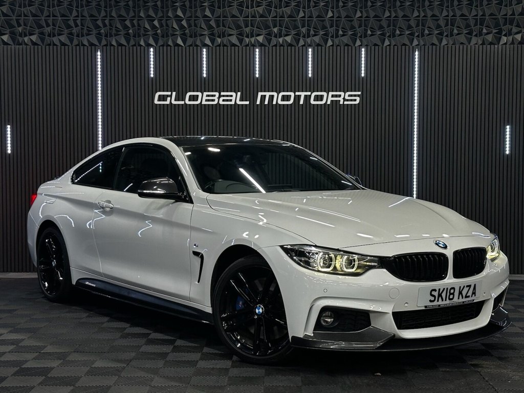 Launceston2018 Alpine White BMW 430D M Sport Coupe xDrive *HARMAN KARDON* *PRO NAV* *HEATED SEATS* Key Features Alpine White Paintwork ZF Auto Gearbox 19” Alloy Wheels - M Double Spoke Style - 704M - High Gloss Black Dakota Leather Interior - Black with Black Interior Harman Kardon Sound System Media Package - BMW Professional Navigation PDC - Parking Distance Control - Front & Rear M Sport Plus Package Exterior Mirrors - Electrically Folding with Anti Dazzle Driver Comfort Package Cruise Control with Brake Function Extended Storage Comfort Access High Beam Assistant M Sport Braking System Enhanced Bluetooth Telephone Preparation with USB Air Conditioning- Single Zone Climate Control Modifications: Carbon Fibre Front Splitter Gloss Black Kidney Grilles Carbon Fibre Mirror Caps Gloss Black Side Skirts Carbon Fibre Rear Lip Spoiler Gloss Black Rear Diffuser For Any Enquires On This Vehicle Then Feel Free To Get In Touch With Us By Calling - 01752 946506 Or Alternatively Send Us A Message & A Member Of The Team Will Be In Touch. Please note: Although every effort is made to ensure the accuracy of every advert and vehicle specification, system and human errors can occur from time to time and it is advised to check for confirmation. .