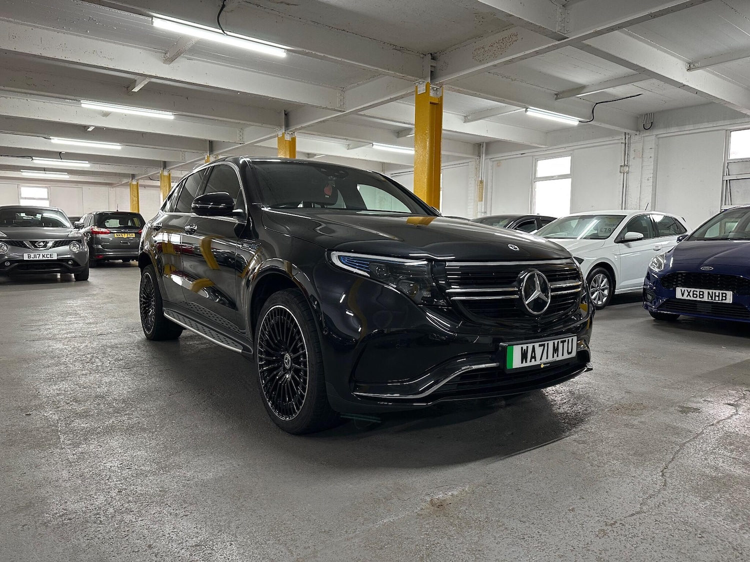 Sheffield2 Previous Owners, This 2021 Mercedes Benz EQC 400 AMG Line (Premium Plus) is a remarkable example of electric luxury. As a four wheel drive electric vehicle, it offers a compelling blend of performance and efficiency, boasting a substantial 88 kWh battery that provides a maximum range of 244 miles when new. Charging is convenient, with a full charge at home taking approximately 12 hours and 13 minutes using a 7kW charger, while rapid public charging can replenish the battery from empty to 80% in just 45 minutes. This particular model comes equipped with the desirable AMG Line trim, enhancing its sporty appeal.The driving experience is further elevated by a suite of premium features. Enjoy immersive audio with the Burmester Surround Sound System, enhanced safety with Blind Spot Assist and MULTIBEAM LED Headlights, and a sense of spaciousness with the electric sliding sunroof. Comfort is assured with heated front seats, and practicality is not overlooked, thanks to a large boot space perfect for luggage or shopping. The EQC 400 AMG Line truly stands out, with its impressive acceleration of 0 to 62mph in a swift 5.1 seconds, demonstrating its superior performance compared to many other vehicles in its class.