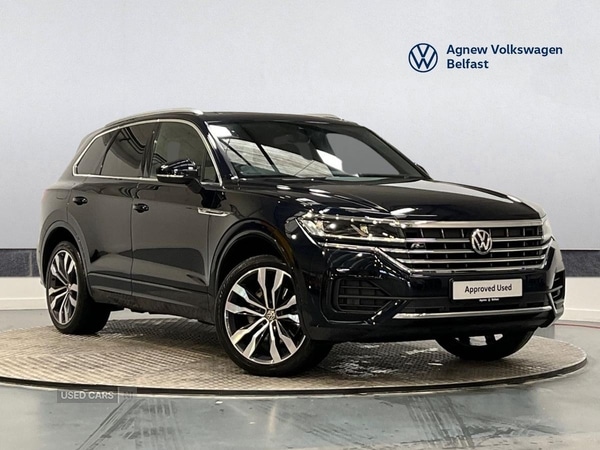 0 Previous Owners, Agnew Volkswagen Belfast are delighted to offer this stunning 2019 Volkswagen Touareg V6 R-Line Tech 3.0 TDI 286PS 4MOTION 8-speed Auto Tiptronic 5 Door in Moonlight Blue with Power Folding Towbar Power Tailgate Keyless Entry Panoramic Sunroof 'Vienna' Leather interior Heated Front Seats App-Connect for Apple CarPlay and Android Auto R-Line body-coloured bumpers Stainless steel pedals Power Folding and Adjustable Exterior Mirrors with Memory Feature Power front seats with drivers side memory feature Park Assist with rear view camera Leather-wrapped, heated, multi-function sports steering wheel with tiptronic Body-coloured bumpers Stainless Steel Pedals Rear Privacy Glass High Beam Assist 4-Zone Climate Control