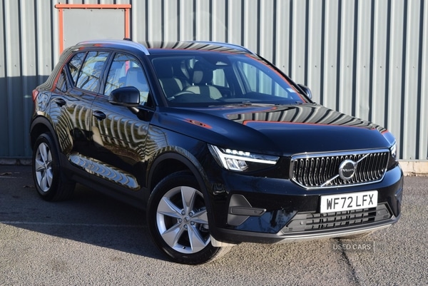 Lisburn1 Previous Owner, The Volvo XC40 2.0 B3P Core Auto offers dependable motoring with 34,412 miles covered to date, ideal for a wide range of drivers seeking a balance of contemporary design and everyday practicality. The automatic transmission delivers smooth progress, while the interior has been designed for comfort with features such as heated front seats, a height-adjustable driver's seat, and multi-directional lumbar support for both driver and passenger. Practical touches, including 60/40 split folding rear seats, an integrated waste bin, and underfloor luggage compartment storage, ensure this vehicle caters to a variety of daily requirements.Performance is supported by a 163 bhp petrol engine, paired with an automatic gearbox for effortless driving. The vehicle achieves a 0-60 mph time of 8.6 seconds and a top speed of 112 mph, offering competent response for both urban and motorway journeys. Adaptive cruise control and speed-sensitive steering contribute to a relaxed and controlled driving experience.A sleek black paint finish is complemented by colour-coordinated door mirrors and high gloss silver skid plates, giving a refined appearance. The dark grey front grille with chrome surround, integrated roof rails in silver, and roof spoiler complete the stylish exterior, while charcoal carpet, floor mats, and headlining enhance the sense of quality inside. The overall design is practical yet sophisticated, with features such as automatic LED headlights, a roof antenna, and rear wiper adding to everyday usability.The XC40 comes well equipped with a 12.3'' progressive driver display, a 9'' centre console portrait touch screen, and connectivity options including wired Android Auto and Apple CarPlay. Safety and peace of mind are prioritised with City Safety, lane keeping aid, multiple airbags, and advanced driver assistance systems such as oncoming lane mitigation and run-off road protection. Further conveniences include a power operated tailgate, wireless mobile phone charging, front and rear parking sensors, and the Volvo Cars app for remote vehicle management