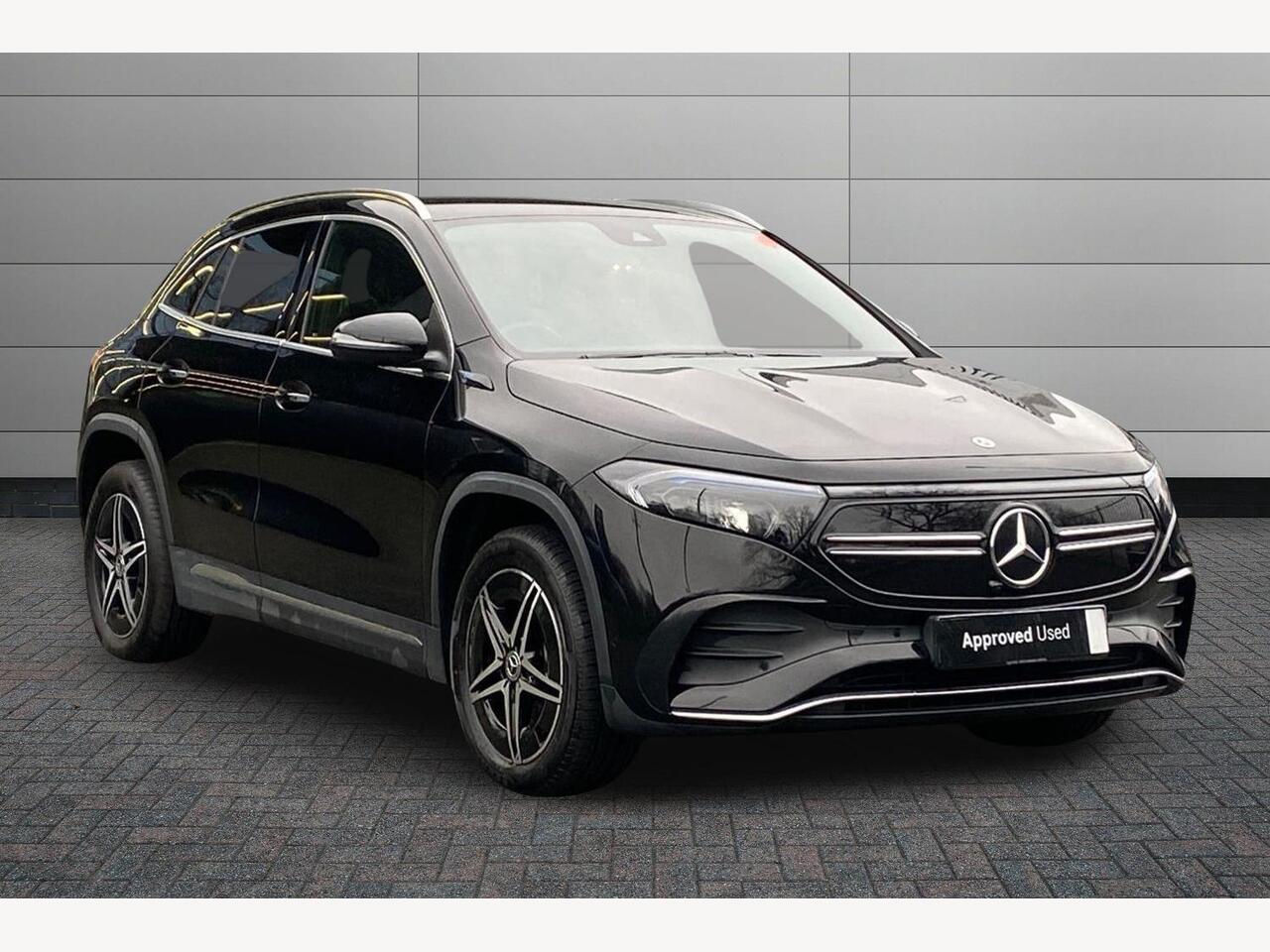 0 Previous Owners, Acoustic ambient protection, DYNAMIC SELECT with a choice of driving modes (max range, ECO, comfort and sport), Easy-pack tailgate, EQ navigation services - map (range display), display charging stations, programming of charging settings and pre entry climate control, Hard-disk navigation, Mercedes Benz emergency call system, Mercedes me connect, Service indicator, Smartphone integration with Apple CarPlay and Android auto, Trip computer, 100KW DC onboard charger, 11KW onboard charger, Charging cable for domestic plug socket, Type G (Mode 2) 5m, Charging cable for wall box and public charging station - Type 2(mode 3) 5m, Combined charging system CCS-2 connector, Comfort suspension, DAB Digital radio, MBUX multimedia system with 10" Digital instrument cluster and 10" media display with touchscreen, Mercedes benz sound system, AMG Line bodystyling including AMG front apron with integrated air curtain and AMG rear apron with diffusor optics, Auto dimming interior mirror, Badge on the wing in high-gloss black with blue EQA lettering, Black panel radiator grille with twin blade design in chrome, Body colour bumpers, Electric front windows, Electric rear windows, Front and rear LED light band, Front fog lights, LED High performance headlamps with adaptive highbeam assist, Polished aluminium roof rails, Privacy glass - heat insulating dark tinted glass, Rain sensor windscreen wipers, Rear wiper, Surround lighting with projection of brand logo, 3 spoke AMG multifunction sports flat bottom steering wheel in nappa leather with galvanised shift paddles, 40:20:40 split folding rear seats, Ambient lighting with choice of 64 colour settings, AMG brushed stainless steel sports pedals with aluminium rubber studs, AMG sports seats, Artico man-made leather/ Dinamica microfiber upholstery, Double Cupholder, Front and rear head restraints, Heated front seats, Illuminated door sills with EQA lettering, Reach and rake adjustable steering column, Rear armrest with storage + through load, Roof lining - Black fabric, Stowage compartment with retractable cover, THERMOTRONIC automatic climate control, Velour floor mats with AMG lettering, Interior light package - EQA, Mirror package - EQA, Parking package with reversing camera - EQA, Seat comfort pack - EQA, Stowage package - EQA, 3 rear seatbelts, 6 airbags - Driver, front passenger, curtain and side airbags, ABS, ESP, Isofix child seat anchor points on outer rear seats, Knee bags, Radar-based recuperation, Remote central locking,