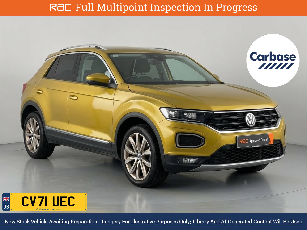 RAC Multi-Point Inspection and Verified Service History Experience Strength, Striking Design, And Sportiness In The T-Roc, Immerse Yourself In Its Features In-Store And Schedule A Test Drive That Exudes Character And Confidence. - Drive In Style And Comfort With This Vehicles £645 Worth Of Factory Fitted Extras Including, Black Cloth Upholstery And Finished In Turmeric Yellow Metallic Paint Standout Key Features Include Gps Satellite Navigation System, Boasting Intuitive Sat Nav Functionality For Seamless Journeys. As You Step Inside Youll Discover An Impressive Array Of Technology, Including Apple CarPlay, Android Auto, Active Lane Keeping Assist, Front and Rear Radar Type Parking Sensors, Rain Sensing Windscreen Wipers, Lane Departure Warning System, Radar Guided Adaptive Cruise Control. Keep Everyone Onboard Entertained Thanks To Features Such As Voice Control For Media Functions, Bluetooth Wireless SmartPhone Connectivity, DAB Digital Radio For A Myriad Of Stations To Suit Your Mood, CD Player With MP3 Compatibility. Relax In The Ultimate Comfort Thanks To Dual-Zone Climate Control, Air Conditioning, Electrically Foldable Door Mirrors, Anti Dazzle Rear View Mirror, Isofix, Front And Rear Electric Windows, Leather Covered Multifunction Steering Wheel. On The Exterior Youll Be Sure To Notice The 18 Inch Alloy Wheels. Also Fitted With Front Fog Lights, Cylinder On Demand Fuel Saving Technology, Engine Start/Stop Fuel Saving Technology, Electric Hill Holder, Tyre Pressure...